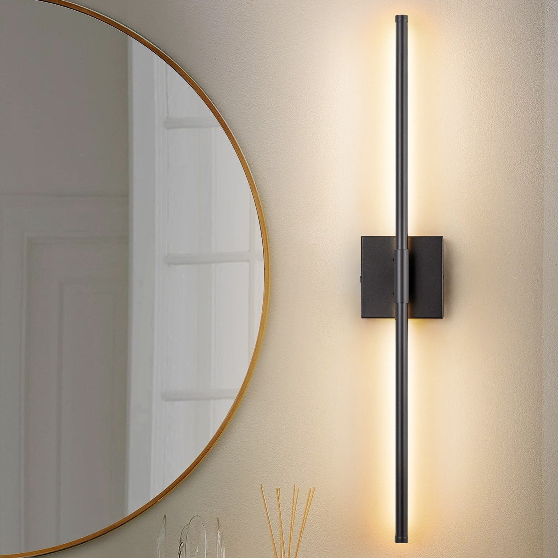 Applique murale linéaire moderne à 1 ampoule, noire, dorée et nickel, à LED, à intensité variable, pour salle de bain