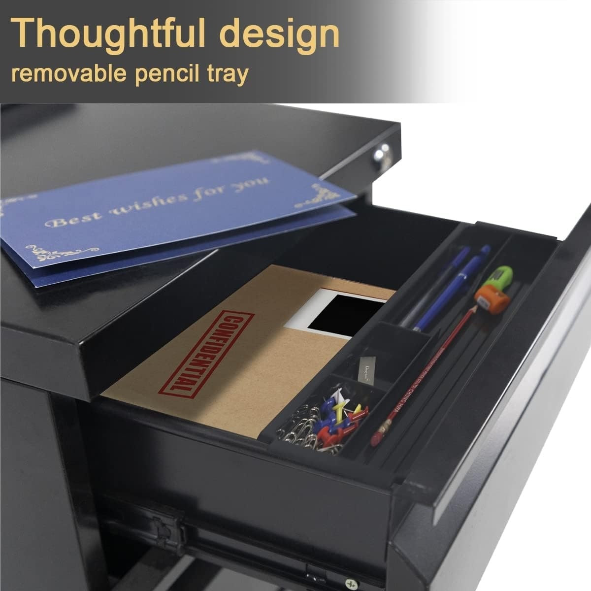 - Classeur vertical : Chaque tiroir s'adapte pratiquement partout et peut contenir jusqu'à 100 dossiers suspendus, supportant chacun 80 livres (environ 36 kg), pour un total de 240 livres (environ 109 kg).