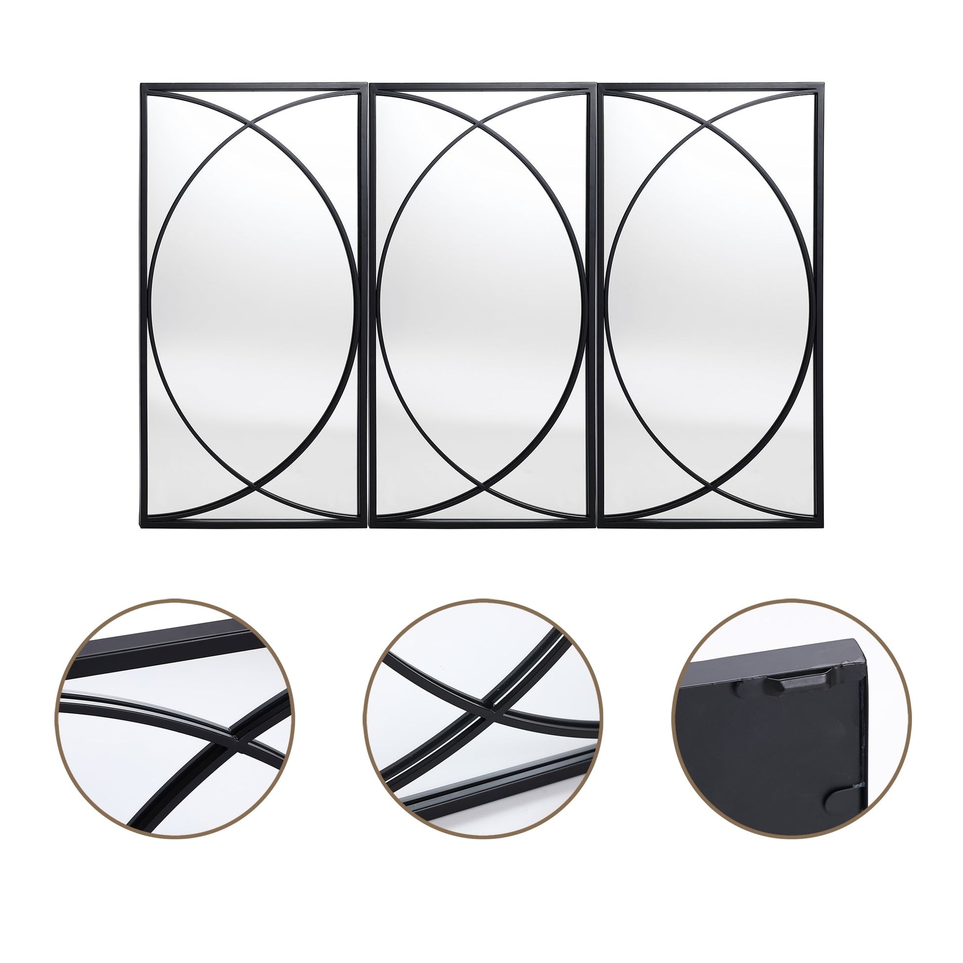 Ensemble de 3 miroirs muraux rectangulaires en métal noir - 31,9 H x 15,75 L x 0,75 P