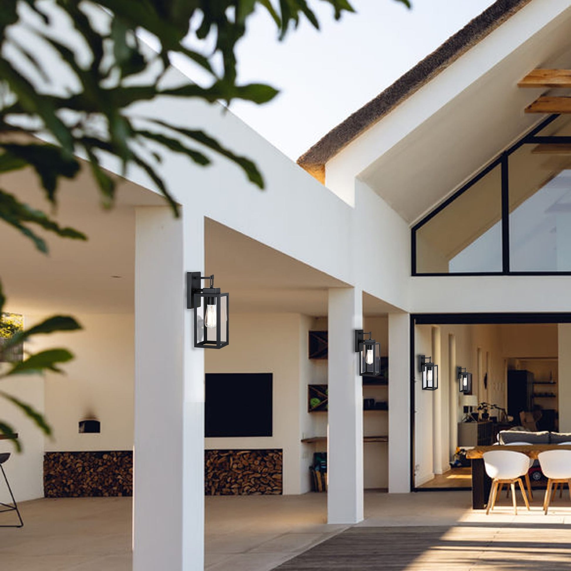 Lot de 4 appliques murales extérieures à 1 lumière, finition noir mat et abat-jour en verre transparent