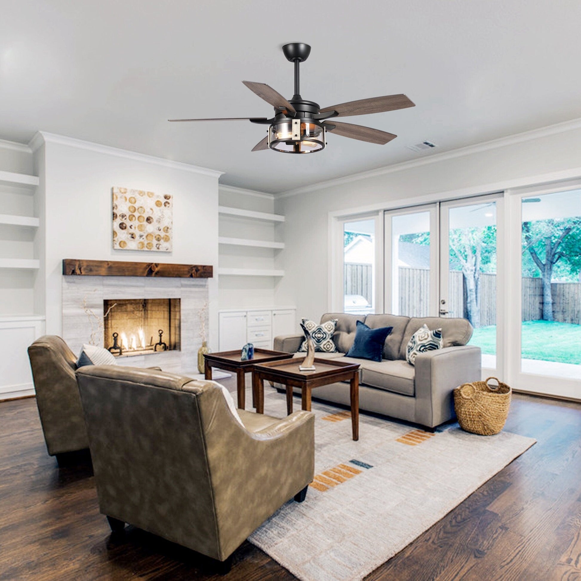 - Comprend un ventilateur de plafond à 5 pales de 52 pouces, une télécommande et un manuel d'instructions
