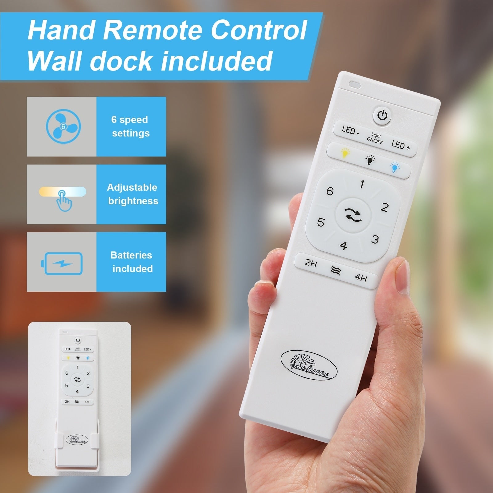 Ventilateurs de plafond à 3 pales en bois de 52 pouces avec éclairage LED à intensité variable et télécommande, moteur CC réversible à 6 vitesses