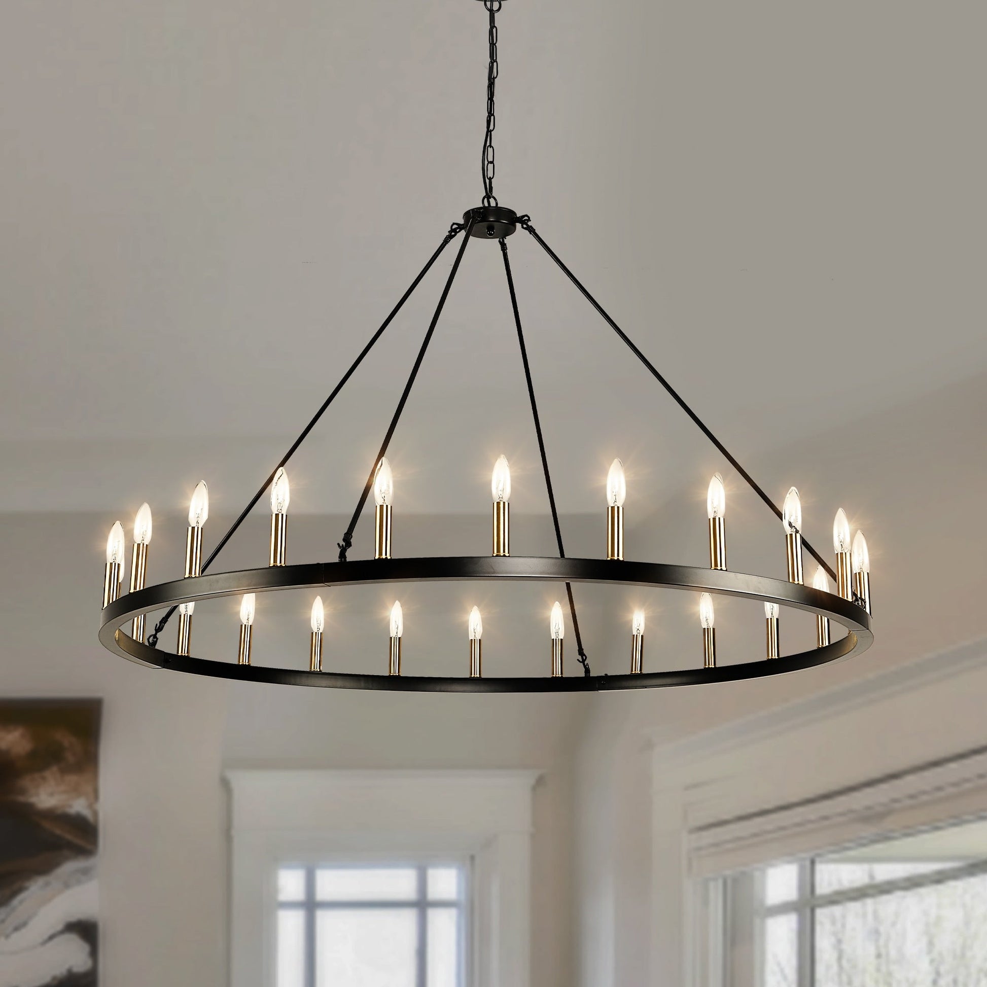 Lustre rond à 24 lumières en forme de roue de chariot de 54 pouces