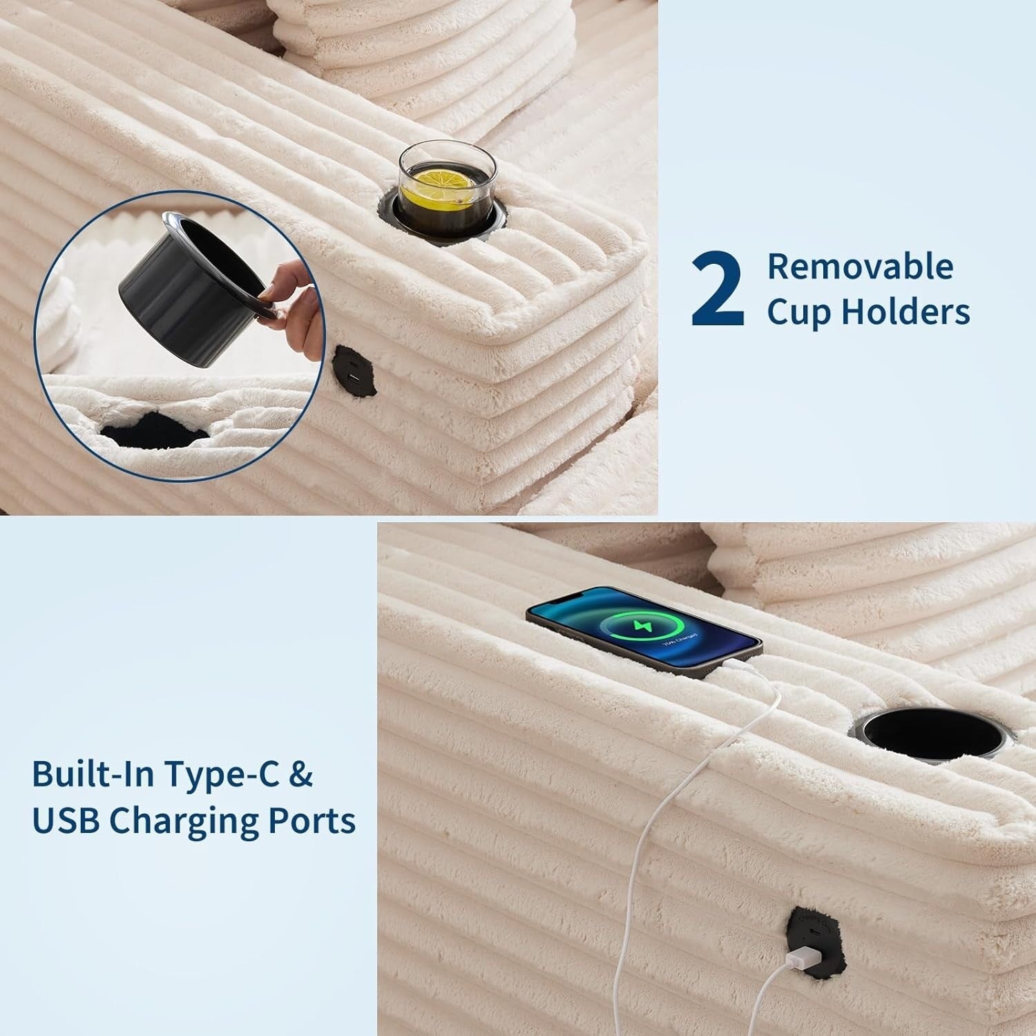[Confort spacieux pour se détendre] Profitez d'une relaxation exceptionnelle avec cette méridienne surdimensionnée, dotée d'une assise généreuse de 137 cm de large et de 119 cm de profondeur. Parfaite pour lire, faire une sieste ou regarder un film, elle offre un espace généreux pour vous et vos proches. Son design spacieux garantit une expérience d'assise haut de gamme, ce qui en fait un ajout idéal aux salons, chambres ou espaces de divertissement. [Revêtement en velours côtelé haut de gamme et résistant] Confectionné en velours côtelé respirant de haute qualité, ce canapé-lit allie luxe et durabilité. Sa texture douce apporte une sensation de confort, tandis que la mousse haute densité et les ressorts ensachés à l'intérieur maintiennent la forme du fauteuil et offrent un soutien moelleux. Que vous jouiez, vous détendiez ou vous reposiez, le revêtement haut de gamme vous offre un confort et un style durables. [Soutien ergonomique complet du corps] Conçue pour votre confort, la méridienne surdimensionnée est dotée d'une assise profonde et ergonomique qui soutient tout votre corps. Ceci favorise la relaxation pour lire, méditer ou se détendre après une journée chargée. La structure du fauteuil favorise une posture saine et réduit la fatigue, vous procurant une sensation de fraîcheur et de confort même lors d'une utilisation prolongée. [Confort intégré] Restez connecté sans effort grâce aux ports de chargement intégrés au fauteuil-lit, vous permettant de recharger vos appareils tout en vous relaxant. Les porte-gobelets amovibles offrent un confort supplémentaire, vous permettant de savourer vos boissons préférées sans avoir besoin de meubles supplémentaires. Ces fonctionnalités bien pensées améliorent votre expérience de détente, idéale pour faire plusieurs choses à la fois tout en lisant ou en regardant la télévision. [Montage simple et design moderne et élégant] Ce fauteuil-méridienne moderne se monte facilement grâce à un processus d'assemblage simple, vous permettant de vous détendre rapidement. Son design élégant et contemporain s'harmonise avec différents styles d'intérieur, ajoutant sophistication et confort à n'importe quel espace. Que ce soit dans un salon, un bureau ou une chambre, c'est une solution d'assise élégante et pratique.