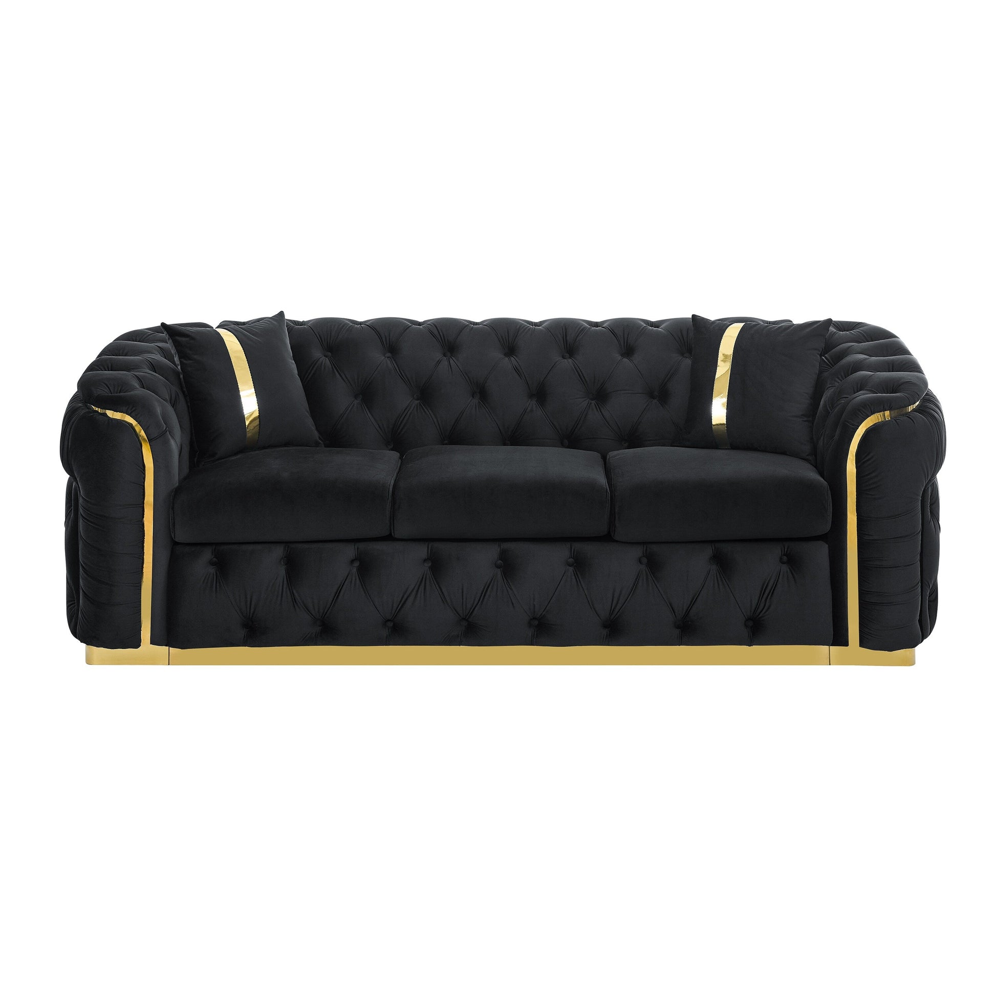 Canapé 3 places en velours 90,6 avec 2 coussins haute densité, touches dorées et coussins