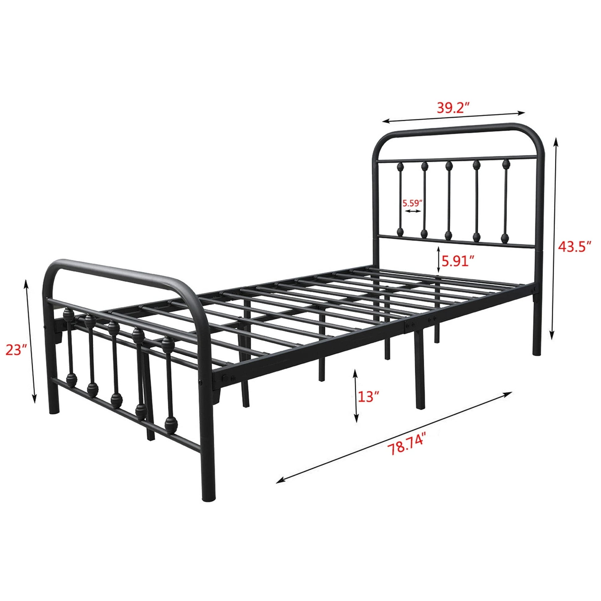 - Double : 39,2 pouces L x 78,74 pouces L x 43,5 pouces H