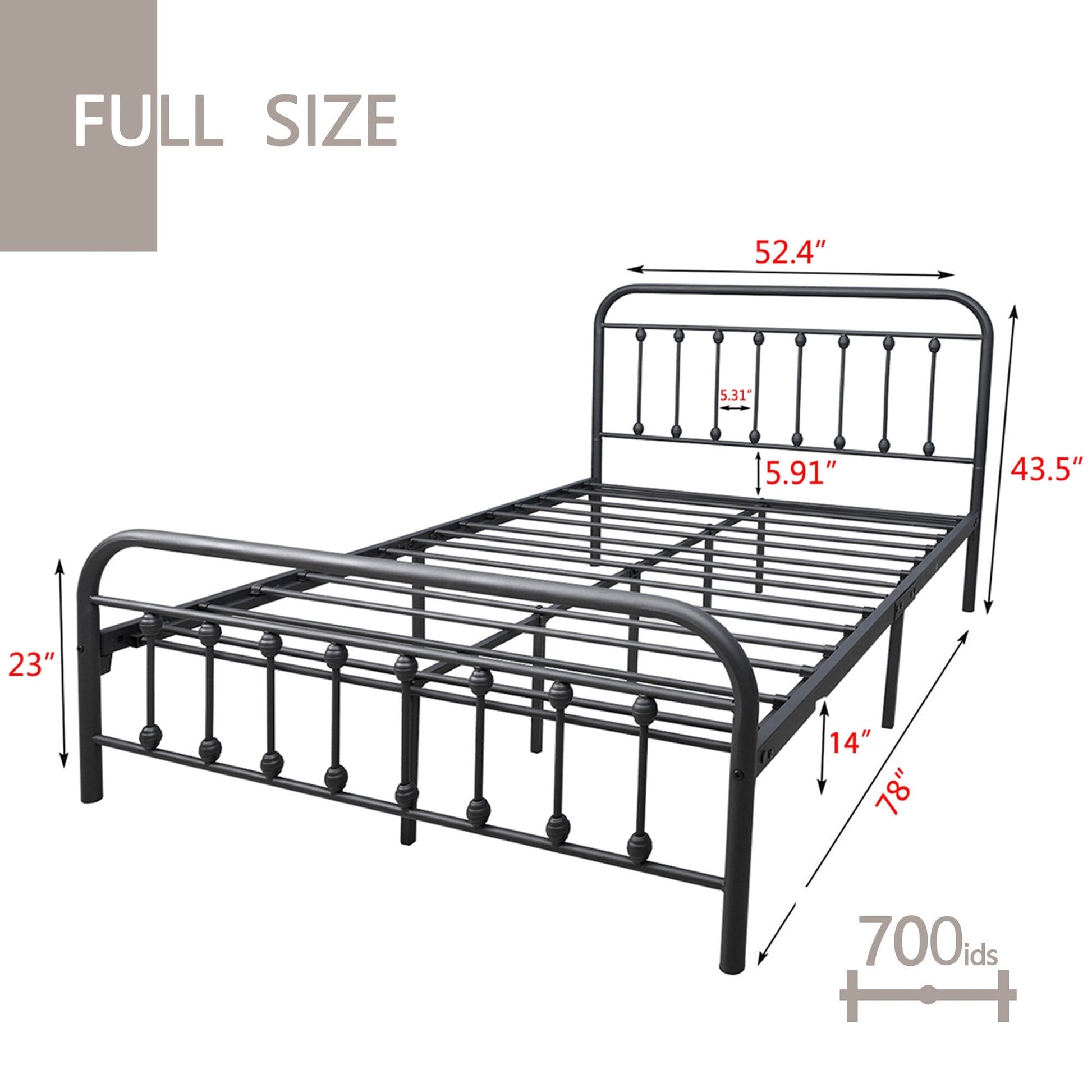 - Queen : 60,2 pouces L x 83,54 pouces L x 43,5 pouces H