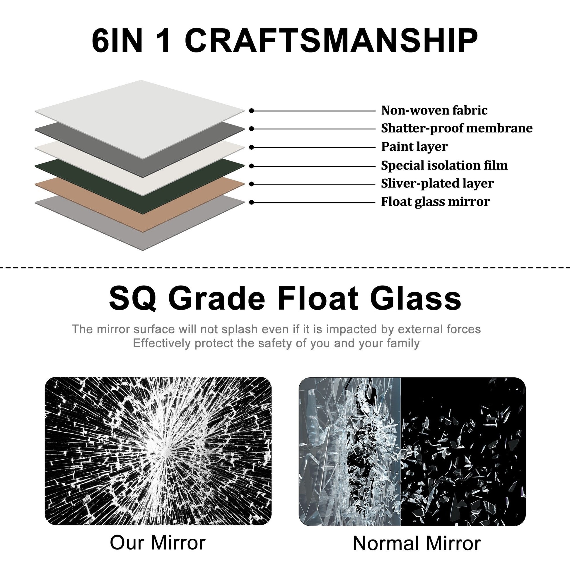 Le miroir pleine longueur est fabriqué en verre HD de 5 mm, en verre flotté de qualité SQ qui peut fournir une image super HD et une réflexion non déformée.