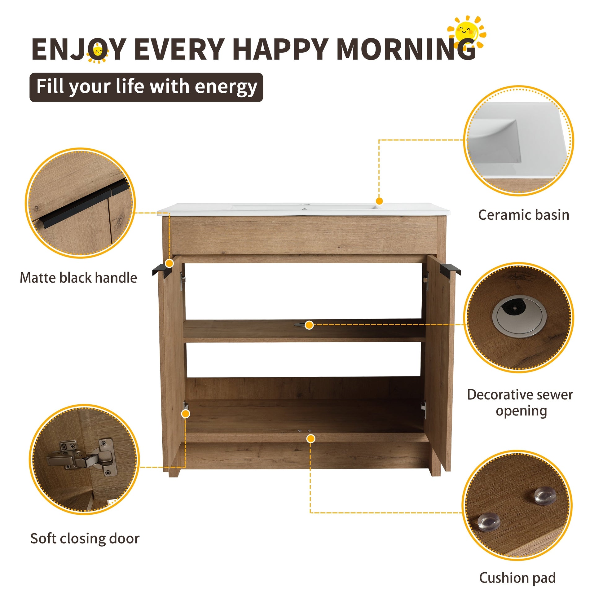 Ajoutez du style et du rangement à votre salle de bain avec le meuble-lavabo îlot Beingnext. Fabriqué en bois durable de haute qualité, ce meuble-lavabo résiste à l'humidité et aux variations de température. Le lavabo en vitrocéramique, lisse et imperméable, facilite le nettoyage. Doté d'une étagère réglable et de charnières à fermeture douce, ce meuble-lavabo offre un espace de rangement personnalisable et un fonctionnement silencieux.