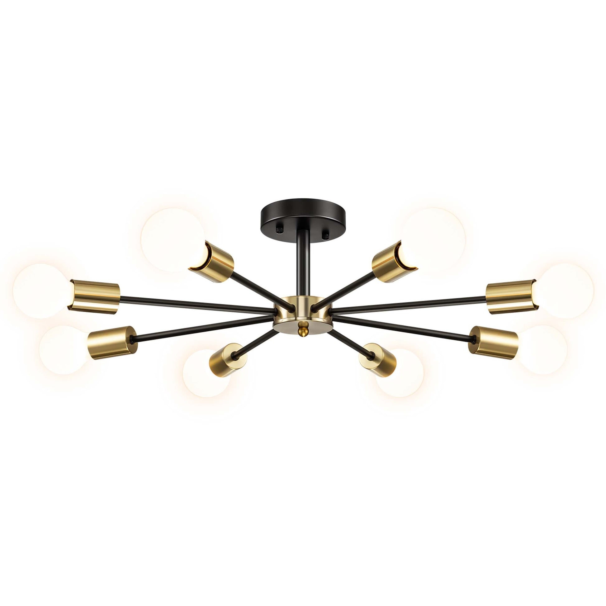Plafonnier semi-encastré Spoutnik noir/doré pour salon, cuisine, bureau, chambre à coucher, hall d'entrée