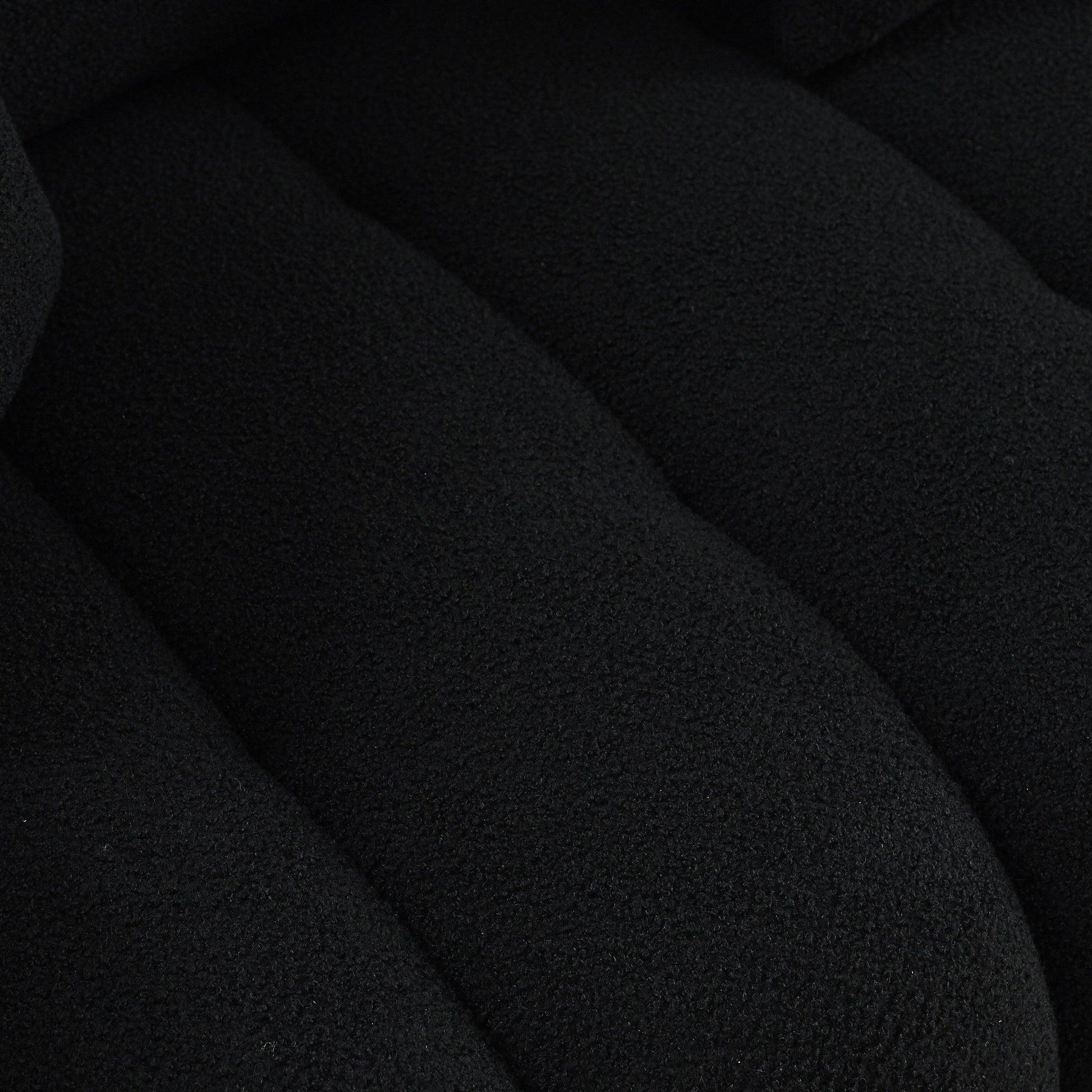 Canapé 3 places Teddy noir avec coussins de dossier et cadre en bois