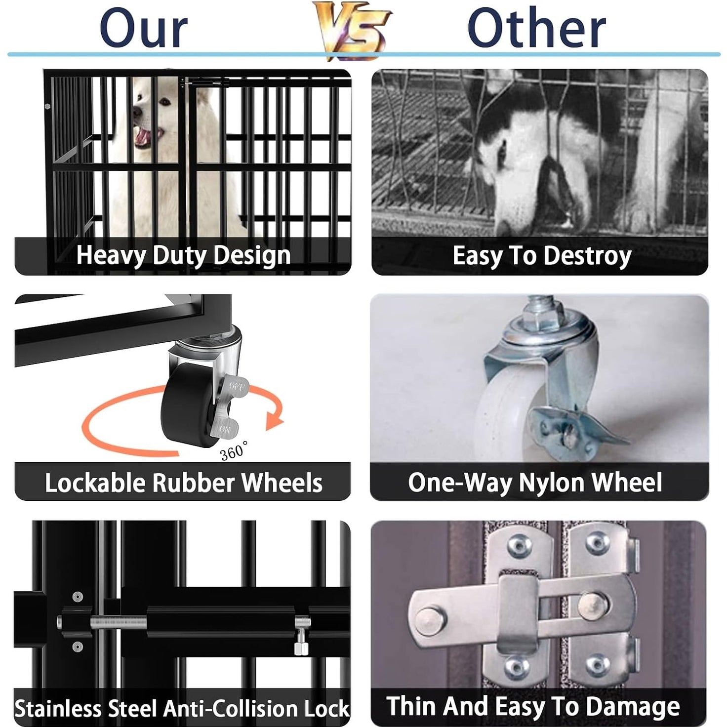 - 🐶【Grande cage pour chien robuste pour l'argent】Cette cage pour chien est spécialement conçue pour le berger allemand, le golden retriever, le labrador et d'autres grands chiens. Si vous rencontrez des problèmes avec la cage de votre chien au cours de l'année, vous pouvez toujours nous contacter et nous serons responsables de votre adorable chien.