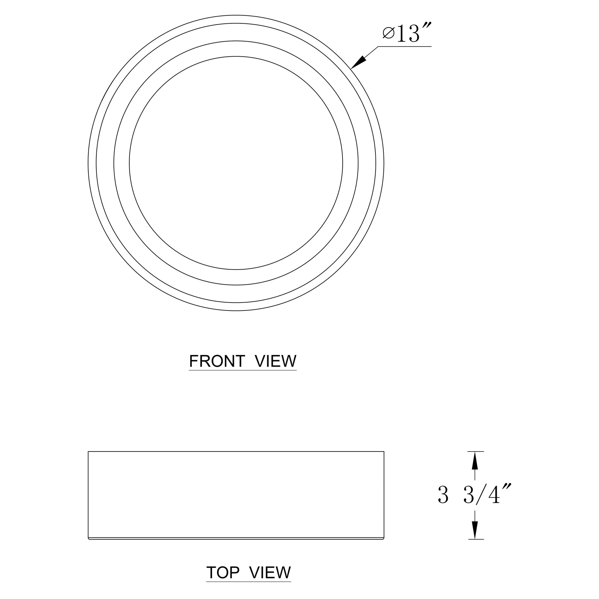 - Le luminaire de 13 pouces mesure 13' de profondeur x 3,75' de hauteur et le luminaire de 16 pouces mesure 16' de profondeur x 3' de hauteur.