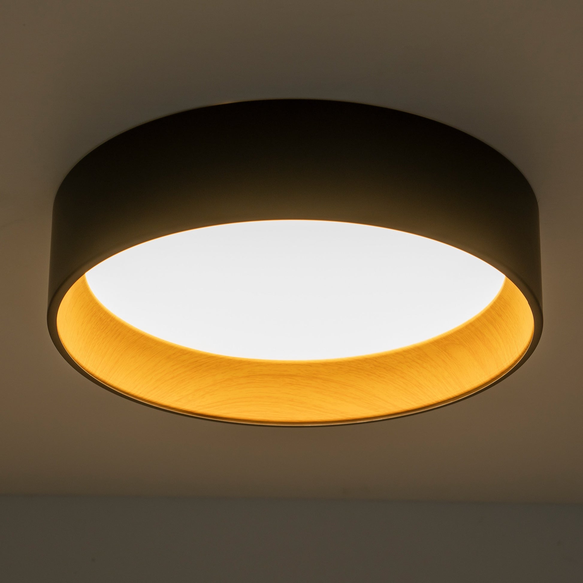 Ce plafonnier rond allie élégance et simplicité. Il est équipé de LED à intensité variable et d'un diffuseur en acrylique blanc, entouré d'un abat-jour en métal bicolore. Son style chic et sobre en fait un luminaire contemporain polyvalent pour les salons, les cuisines et les chambres. Son indice d'étanchéité en fait également un choix sûr pour un plafonnier de salle de bain.