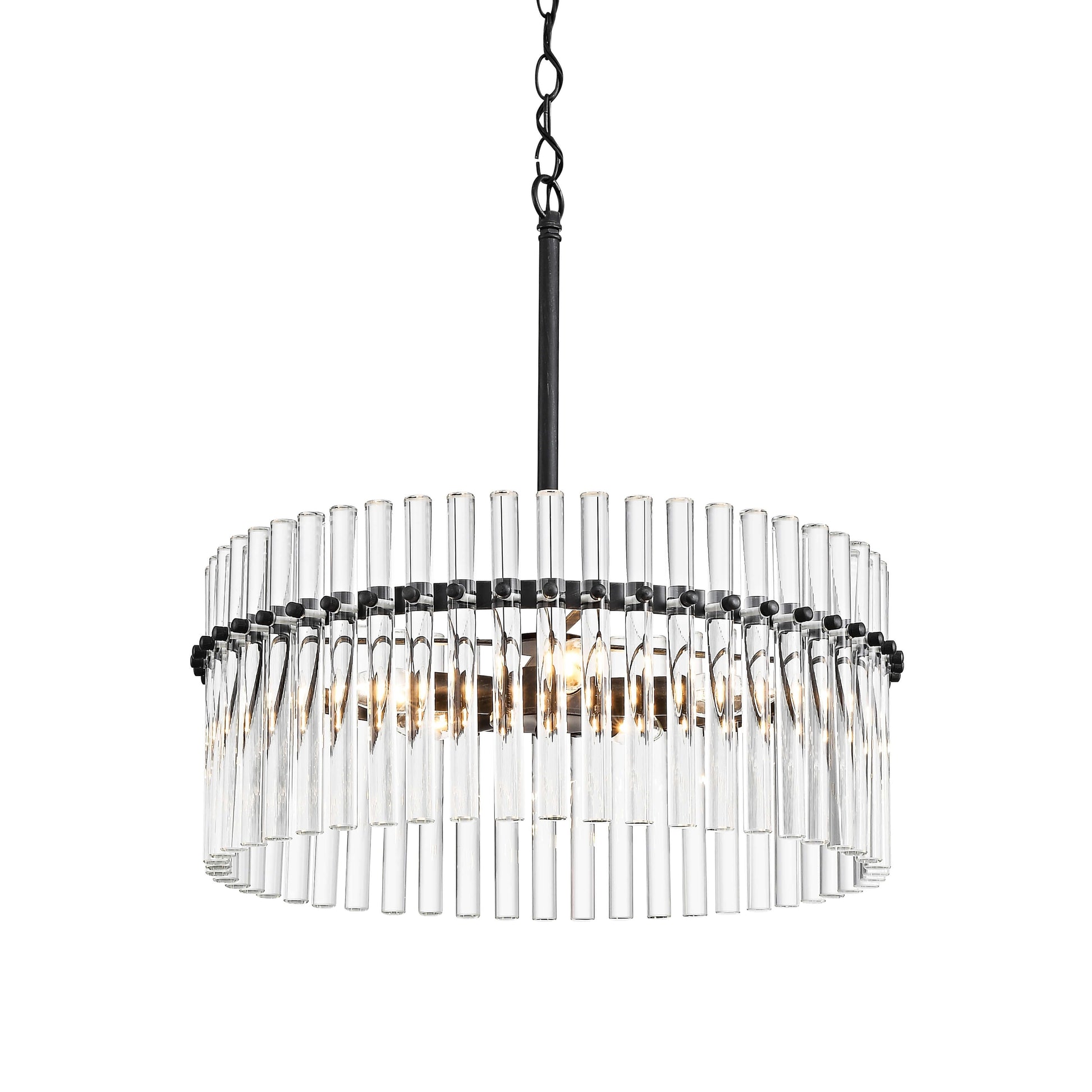 Créez une ambiance chic et luxueuse chez vous avec le lustre en cristal Casandra à 5 lumières. Ce lustre contemporain et moderne est composé de fer et de barres de cristal cylindriques en verre transparent qui réfractent magnifiquement la lumière. Doté d'un éclairage multidirectionnel et d'une hauteur de suspension réglable, il est polyvalent et idéal pour tous les espaces.