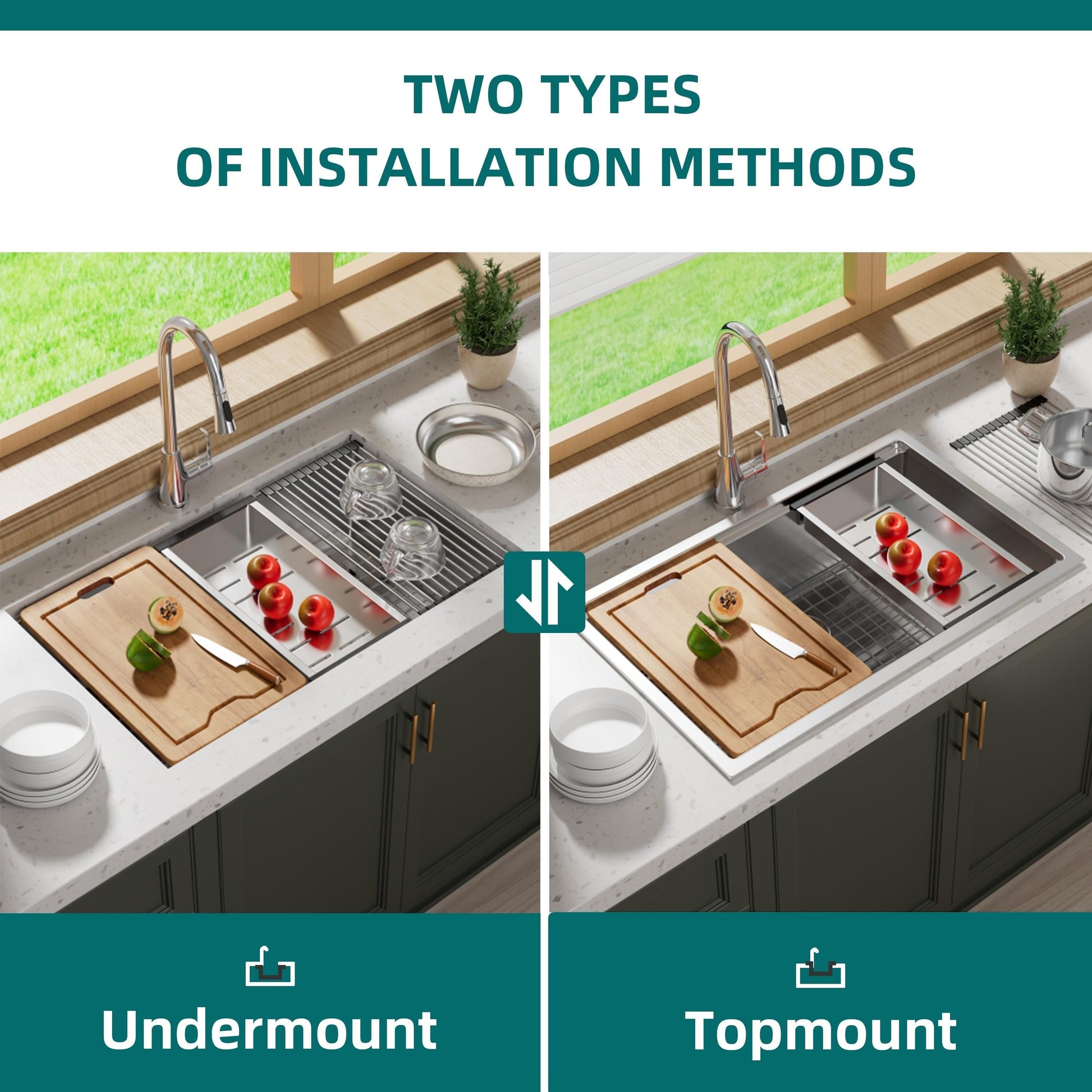 ✅【Évier simple de grande capacité et profond】: Grande capacité de 32 pouces et profondeur de 10 pouces, peut facilement laver et placer des casseroles, des poêles et de la vaisselle dans l'évier plus spacieux afin d'économiser de l'espace sur le comptoir de la cuisine et de continuer à nettoyer.