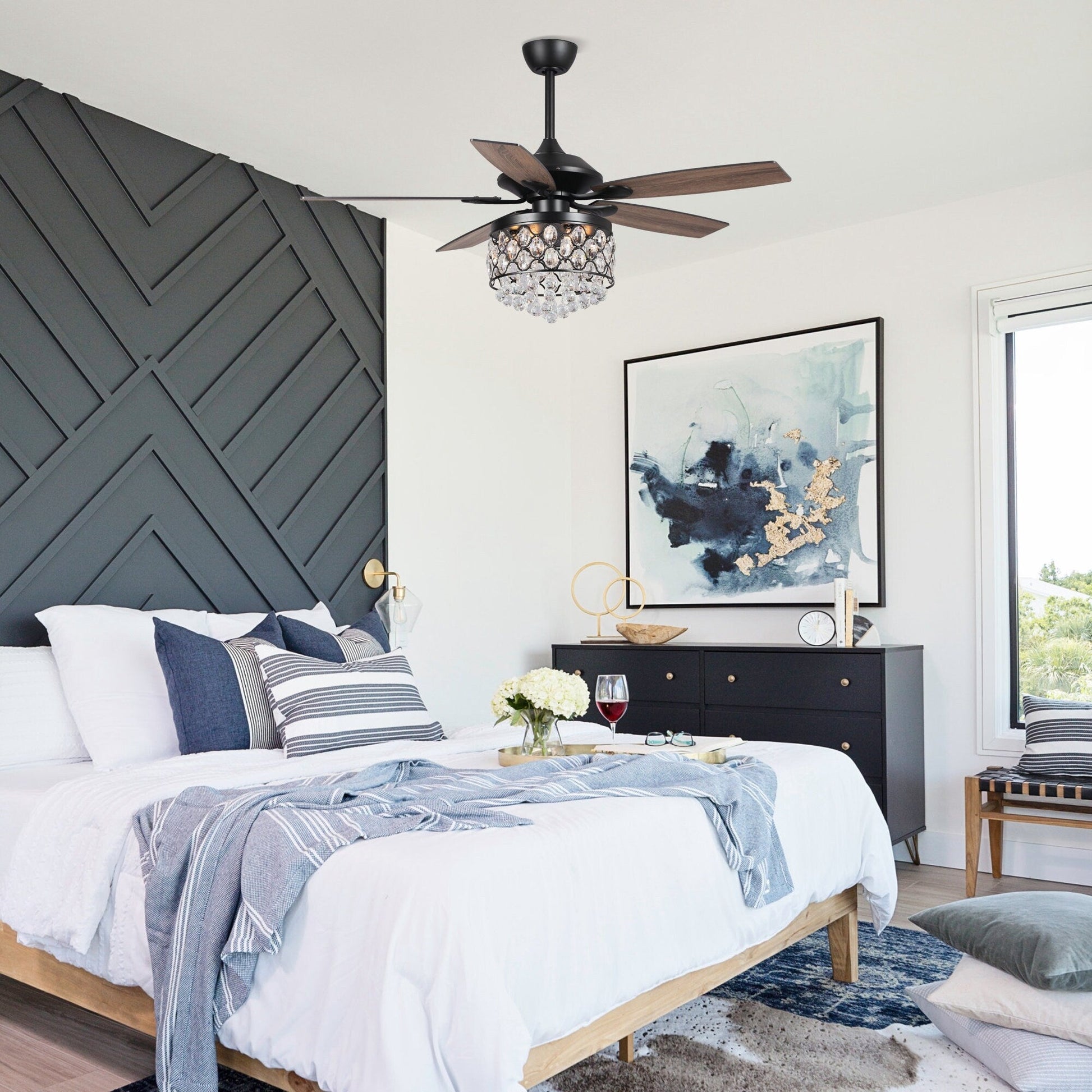 - Ventilateur de plafond moderne avec ornements en cristal scintillants