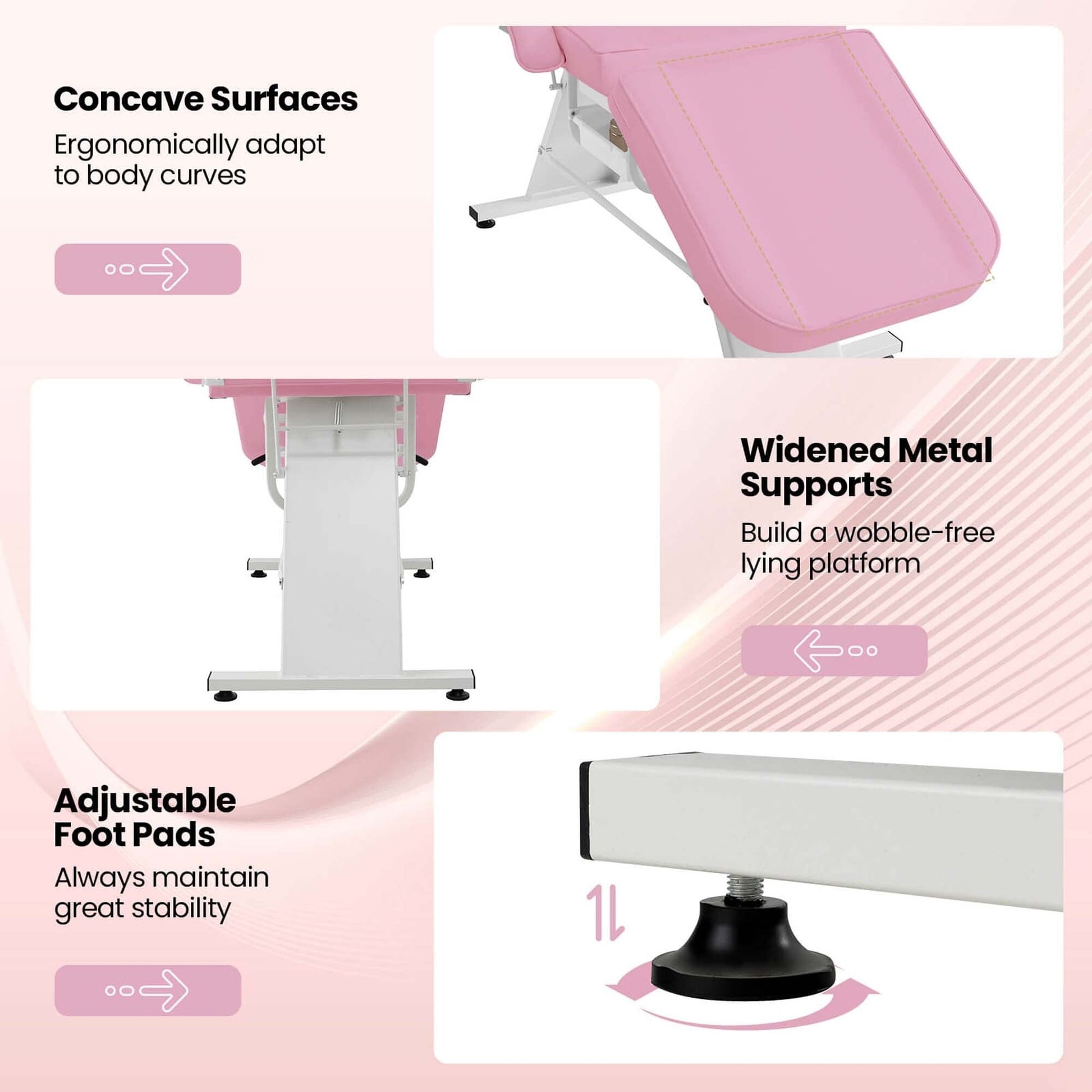 Lit de massage Costway 72 avec tabouret hydraulique, dossier réglable et