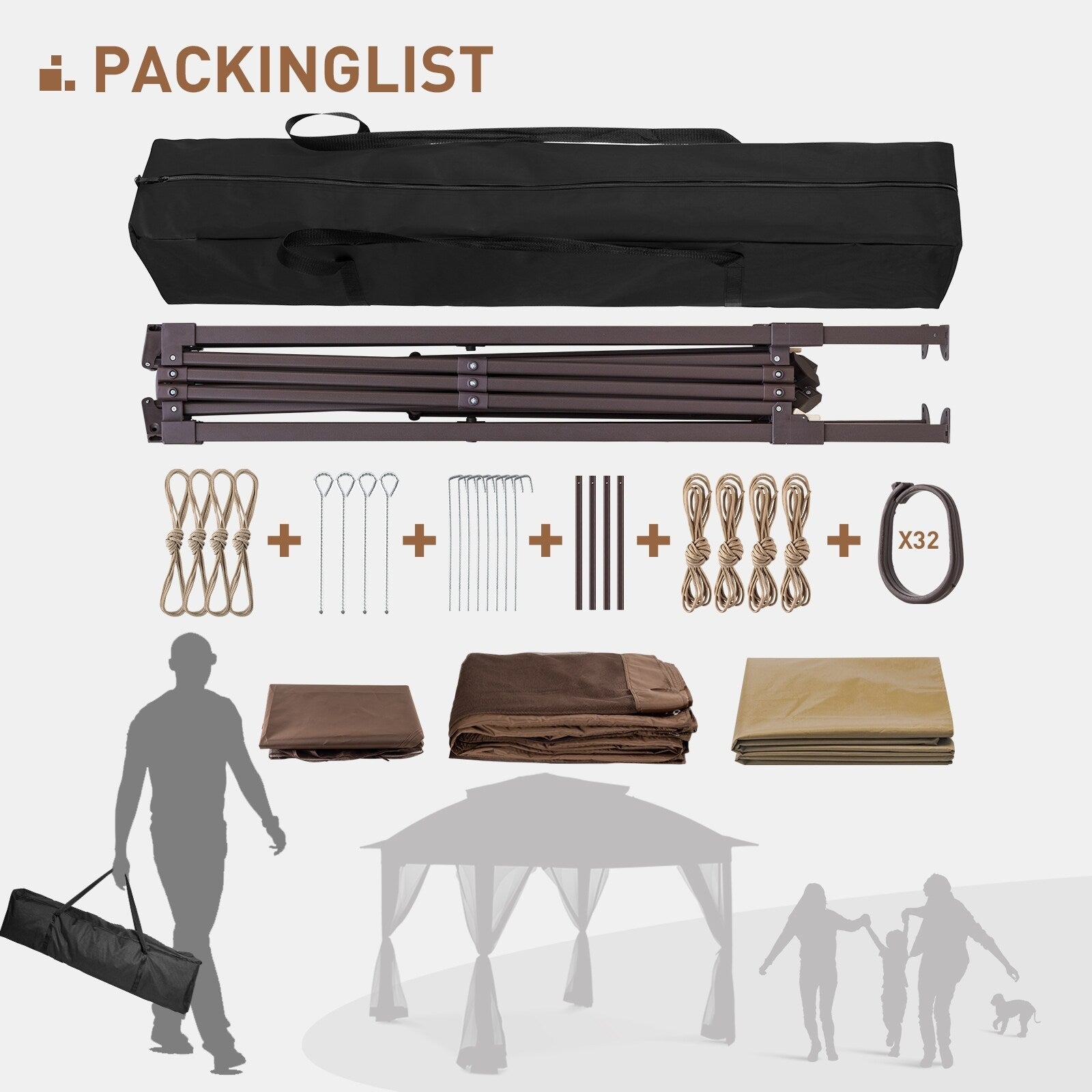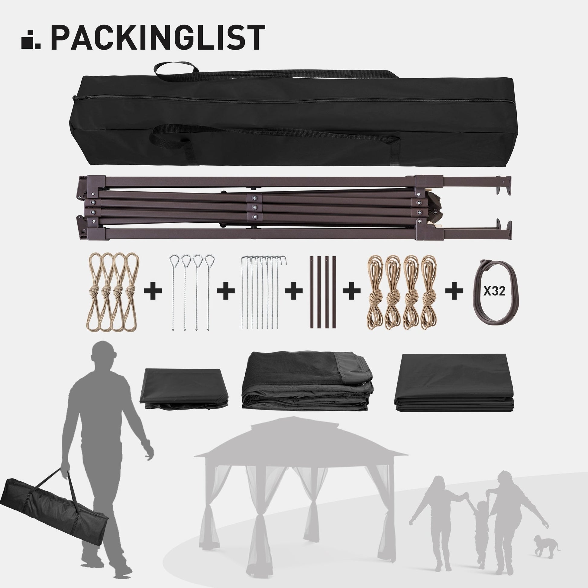 La tonnelle pliante Cozywor présente un design élégant avec un double toit bien ventilé pour une ambiance fraîche. Elle est équipée d'une moustiquaire rabattable pour protéger des moustiques et offrir un espace plus intime. Créez instantanément un espace de rassemblement extérieur pour vos proches, à l'abri du soleil et des insectes. Fabriquée en tissu Oxford, elle est livrée avec une housse de transport pour un transport facile. Grâce à des instructions de montage simples et faciles à suivre, vous pourrez vous détendre dans votre nouvel espace de vie extérieur préféré en un rien de temps.