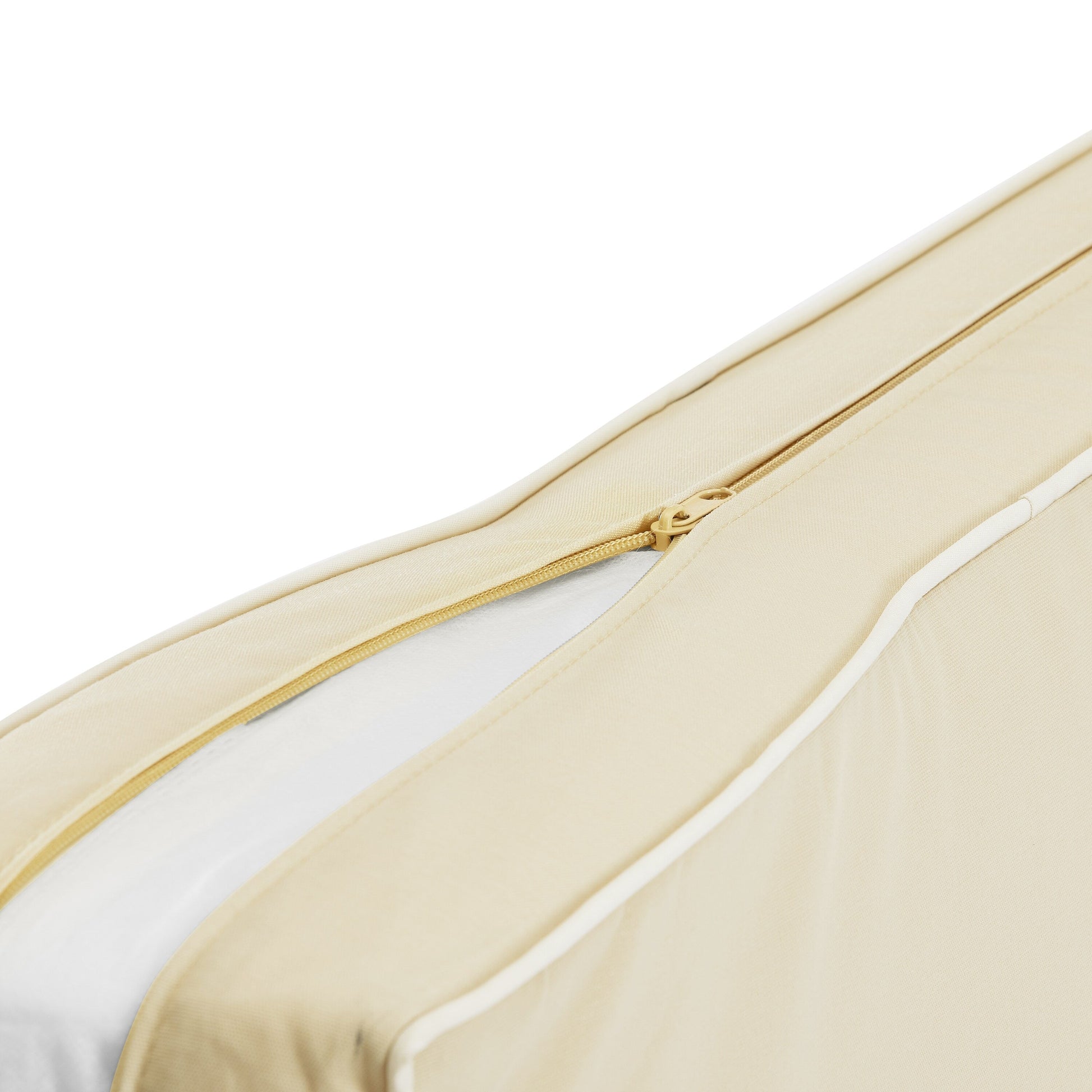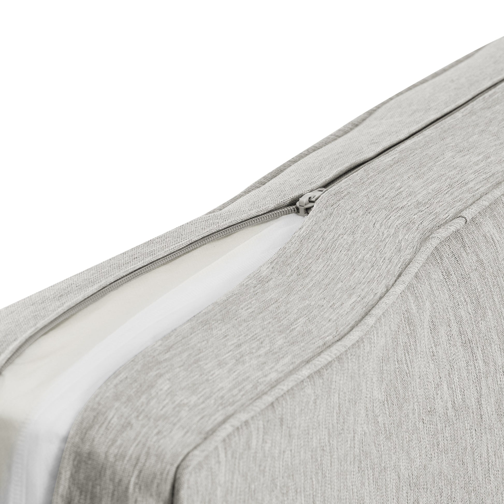 - Housses de coussin en gris, bleu marine, sangria foncé, sable neutre ou blanc avec passepoil contrasté