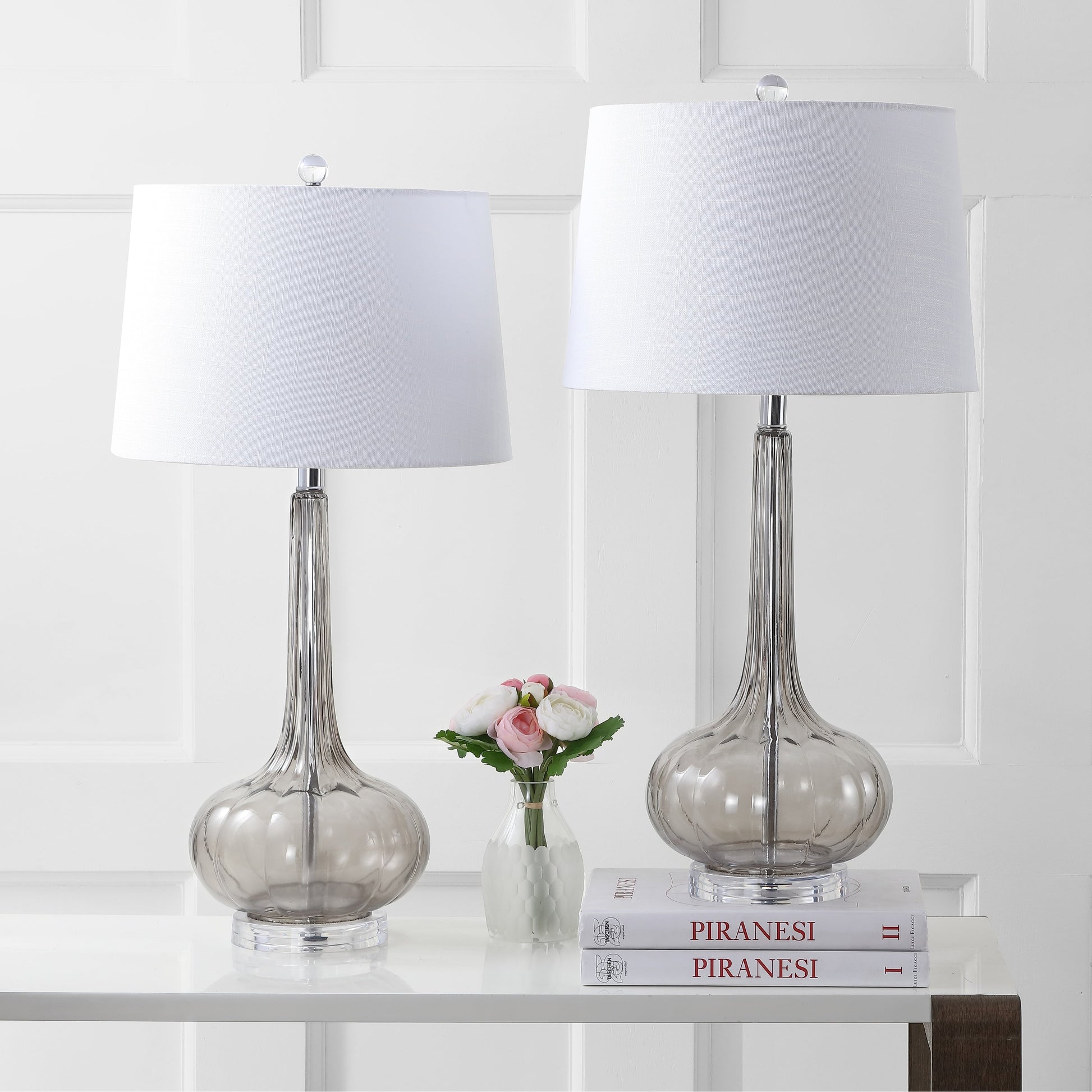 Ajoutez une touche de couleur à n'importe quelle pièce avec cet ensemble de deux lampes de table LED Diamante en verre rose de 73 cm, en forme de goutte, de JONATHAN Y. Leur style classique en verre et leur abat-jour tambour surdimensionné en font un choix polyvalent pour tous les espaces. Parfaites pour une lecture de chevet ou comme pièces maîtresses sur une console, ces lampes sont dotées d'un cordon gainé de soie et d'ampoules LED écologiques.