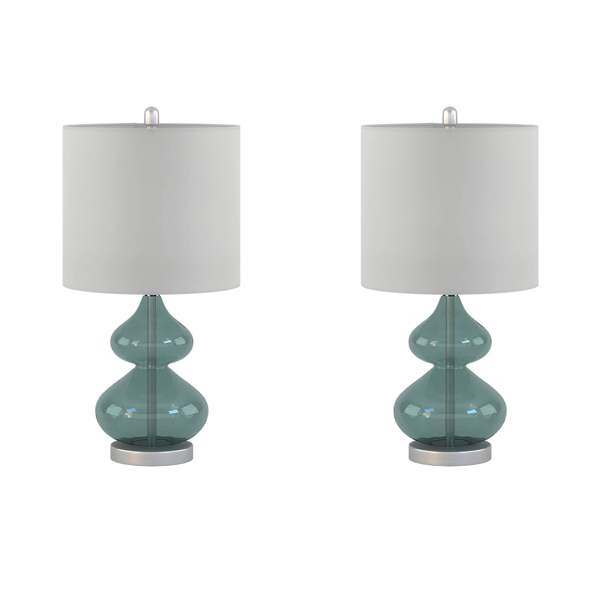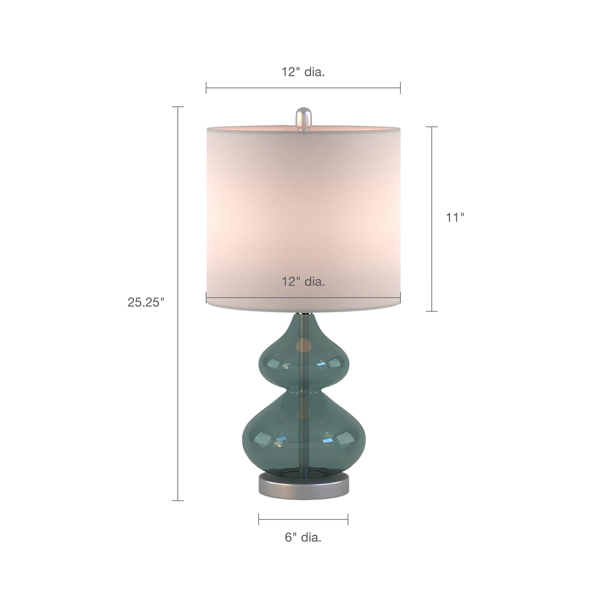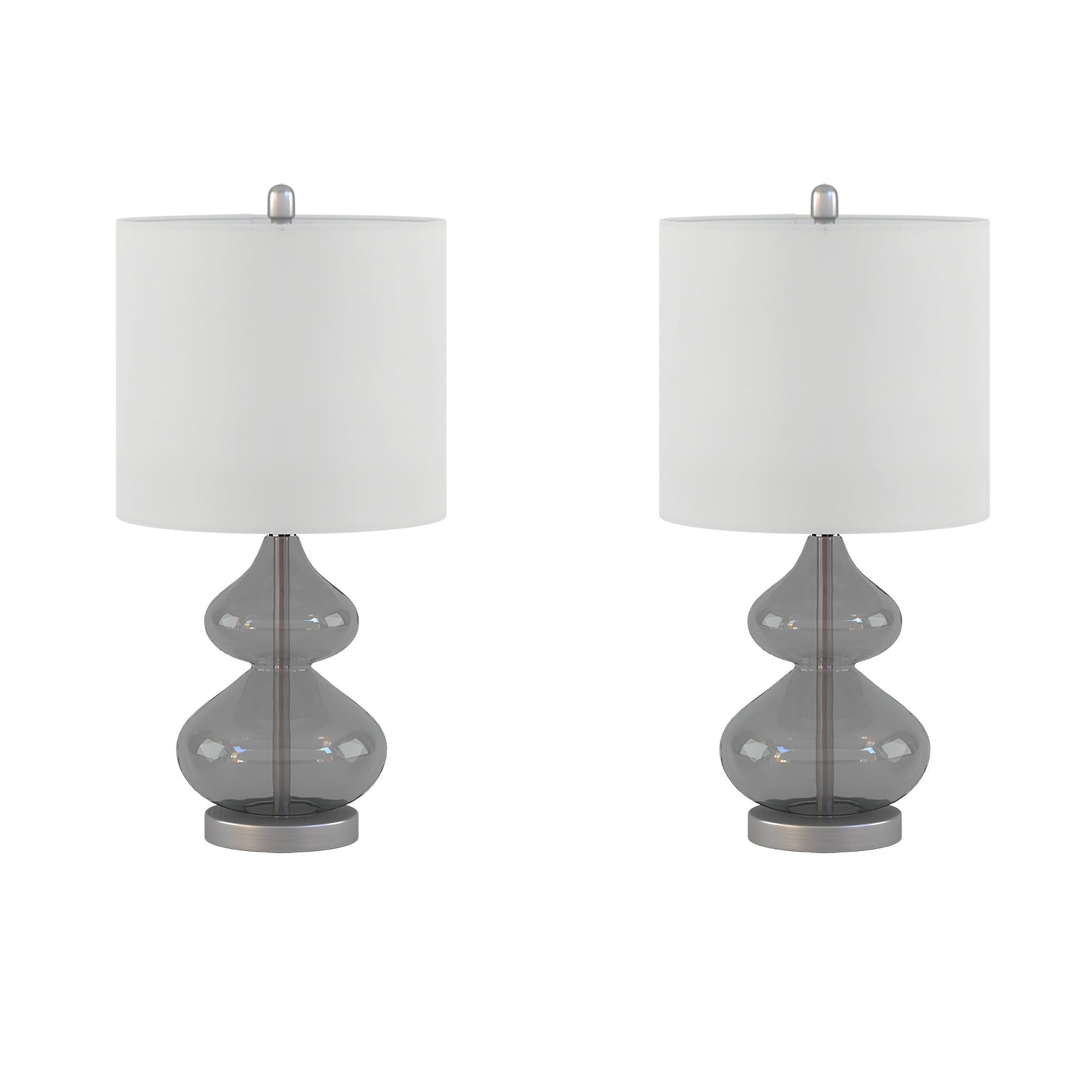 L'ensemble de lampes de table Ellipse de 510 Design apporte une élégance moderne à tous les espaces. Ce lot de deux lampes est composé de deux bases en verre en forme de calebasse, aux surfaces polies et aux touches de métal doré brossé. Le verre translucide diffuse doucement la lumière pour une ambiance chaleureuse. Chaque lampe est surmontée d'un abat-jour tambour en tissu blanc et d'un fleuron en métal doré pour une touche sophistiquée. Polyvalentes, elles offrent un éclairage vers le haut et vers le bas et sont équipées de deux ampoules LED 9 W basse consommation. Idéales pour le salon, la chambre ou le bureau. Nettoyage des taches uniquement. Garantie limitée de 2 ans.