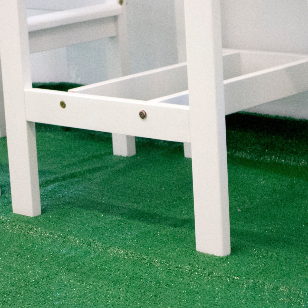 - Conception de plateau de table et de dossier de chaise à lattes, bases en métal soutenant les pieds pour plus de durabilité