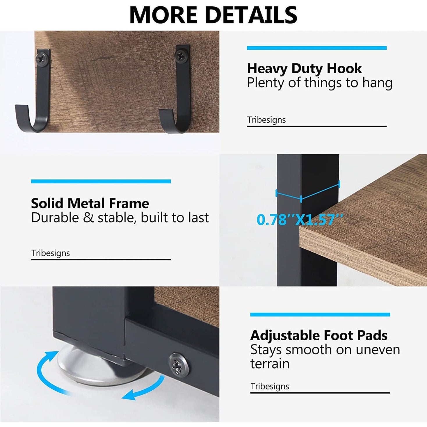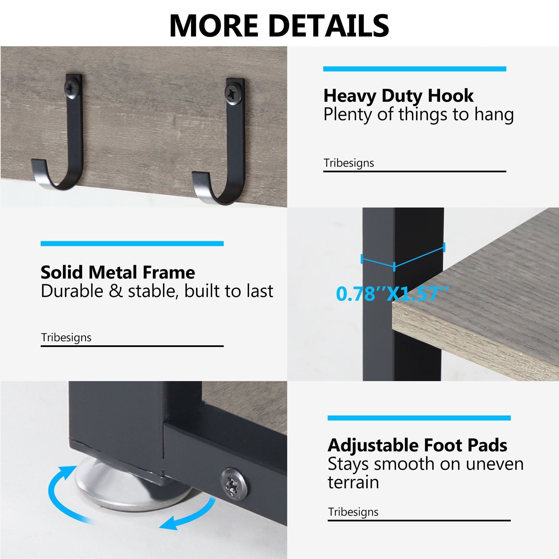 - Beaucoup d'espace de rangement pour manteaux, sacs, chapeaux, laisses de chien, clés, chaussures, photos, petites plantes, livres et portefeuilles