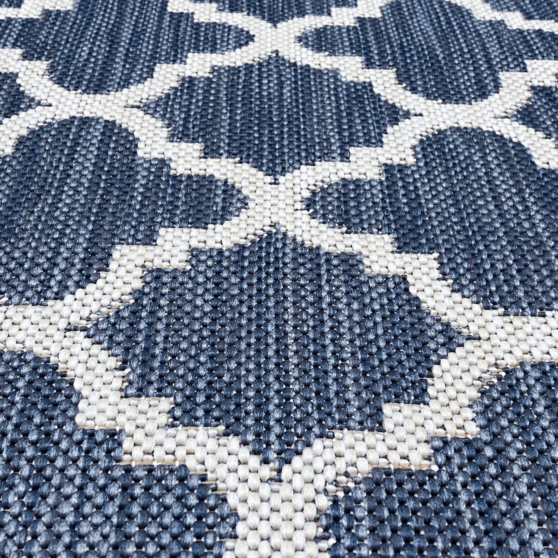 Apportez une touche méditerranéenne à votre intérieur avec le tapis d'extérieur Exo Coastal Geometric. Son motif classique à quatre feuilles et sa conception robuste en font un choix élégant et polyvalent pour tous les espaces. Ses fibres résistantes aux taches et à la décoloration garantissent une longue durée de vie, tandis que sa faible épaisseur lui permet de se glisser facilement sous les portes et les meubles. Ce tapis est idéal pour les zones de passage et sans danger pour les enfants et les animaux. Utilisez-le dans votre salon, véranda, porche, terrasse, bureau, salle de jeux ou chambre d'enfant. Son entretien est un jeu d'enfant : un simple coup d'aspirateur ou un nettoyage localisé suffit. Pour un nettoyage plus approfondi, utilisez un détergent doux et un tuyau d'arrosage à l'extérieur.