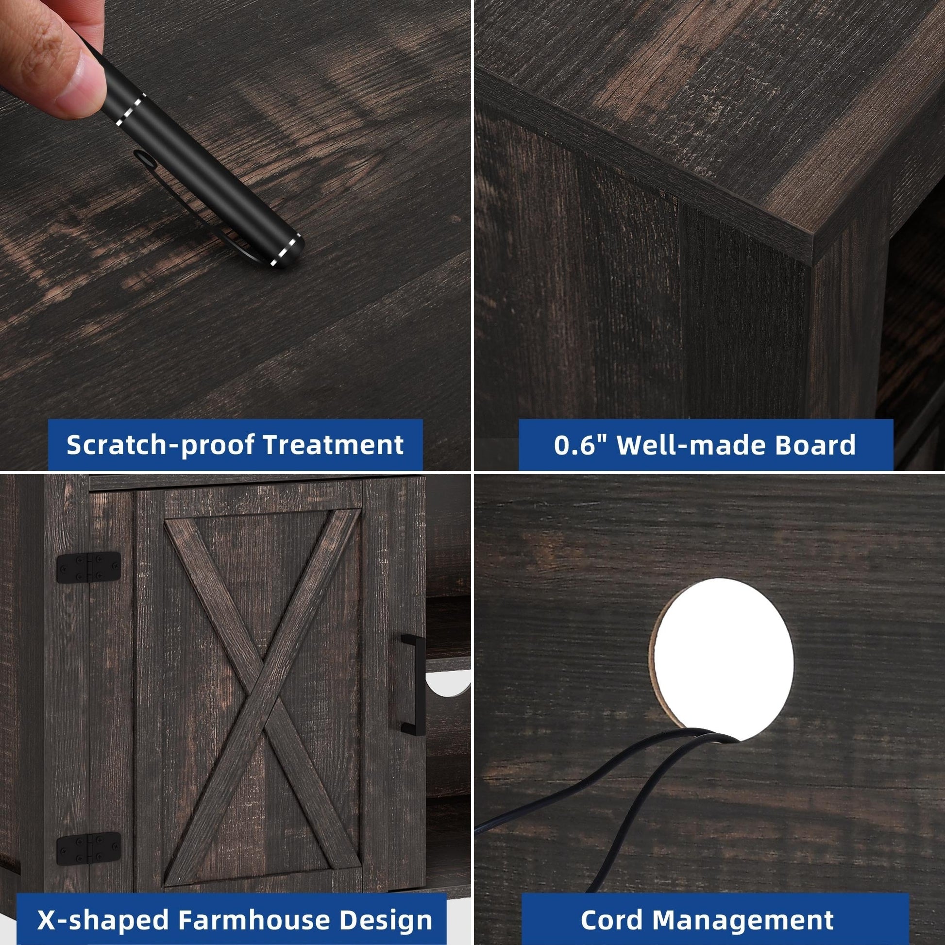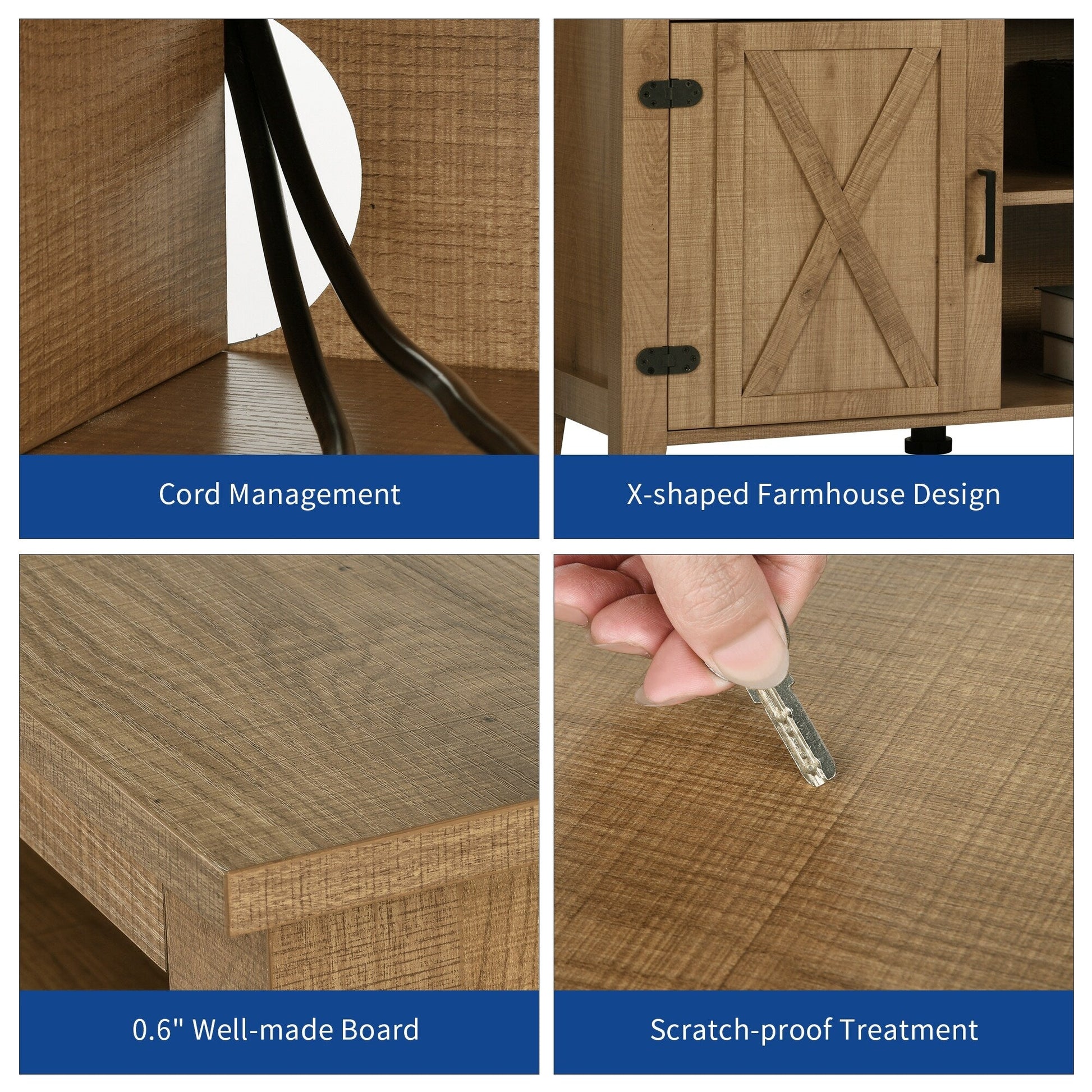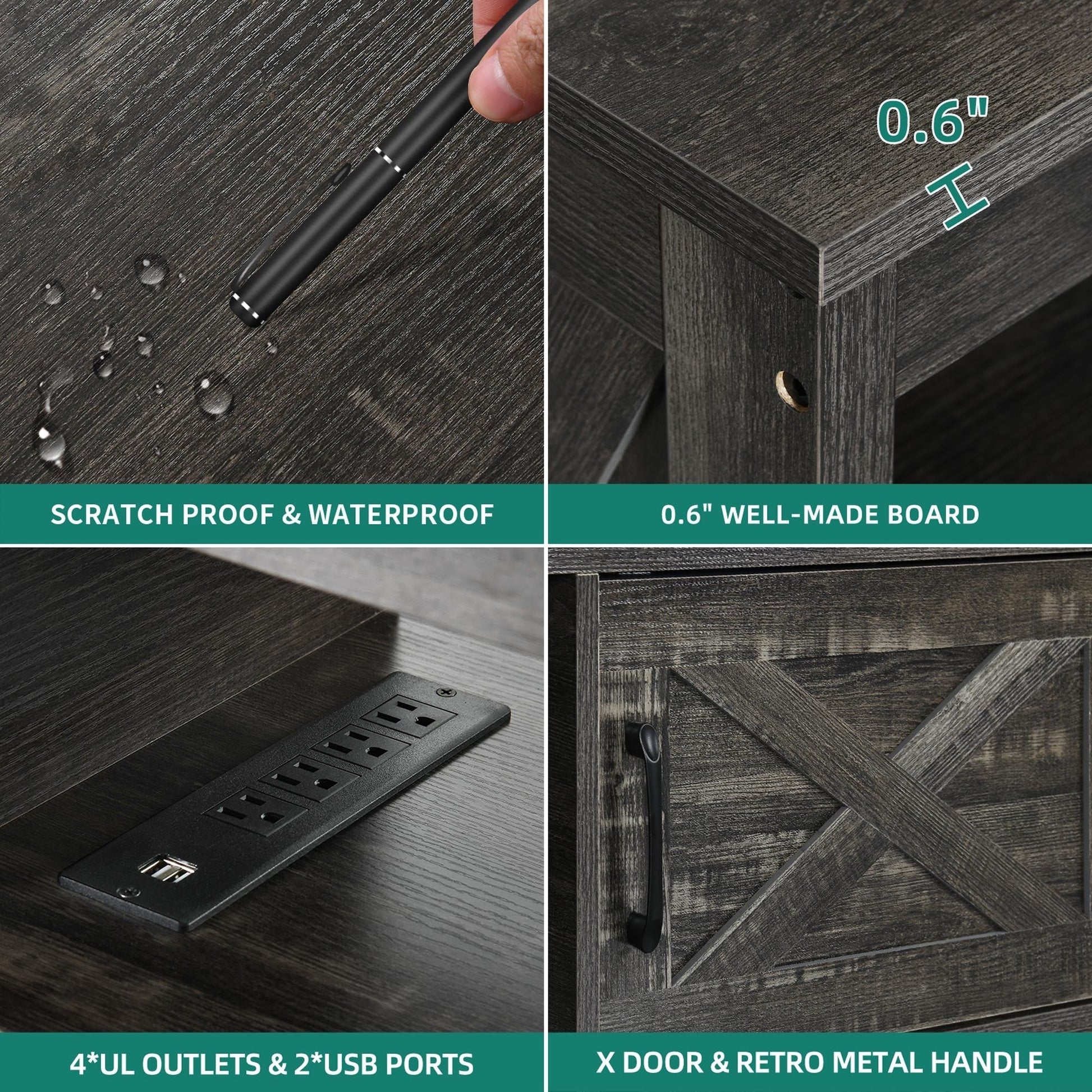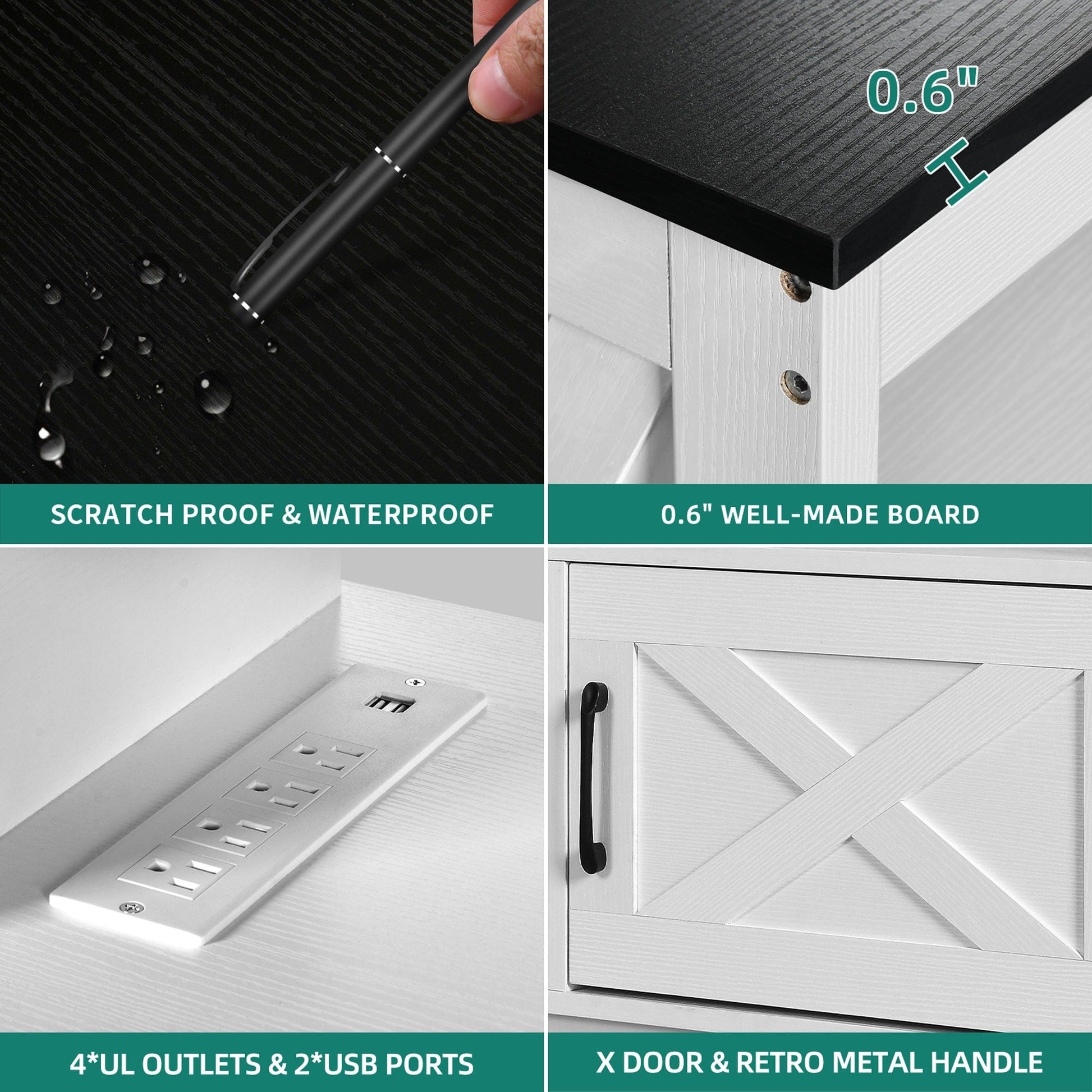 Meuble TV Farmhouse pouvant accueillir jusqu'à 65 téléviseurs avec portes et étagères ouvertes Console multimédia Prise de courant