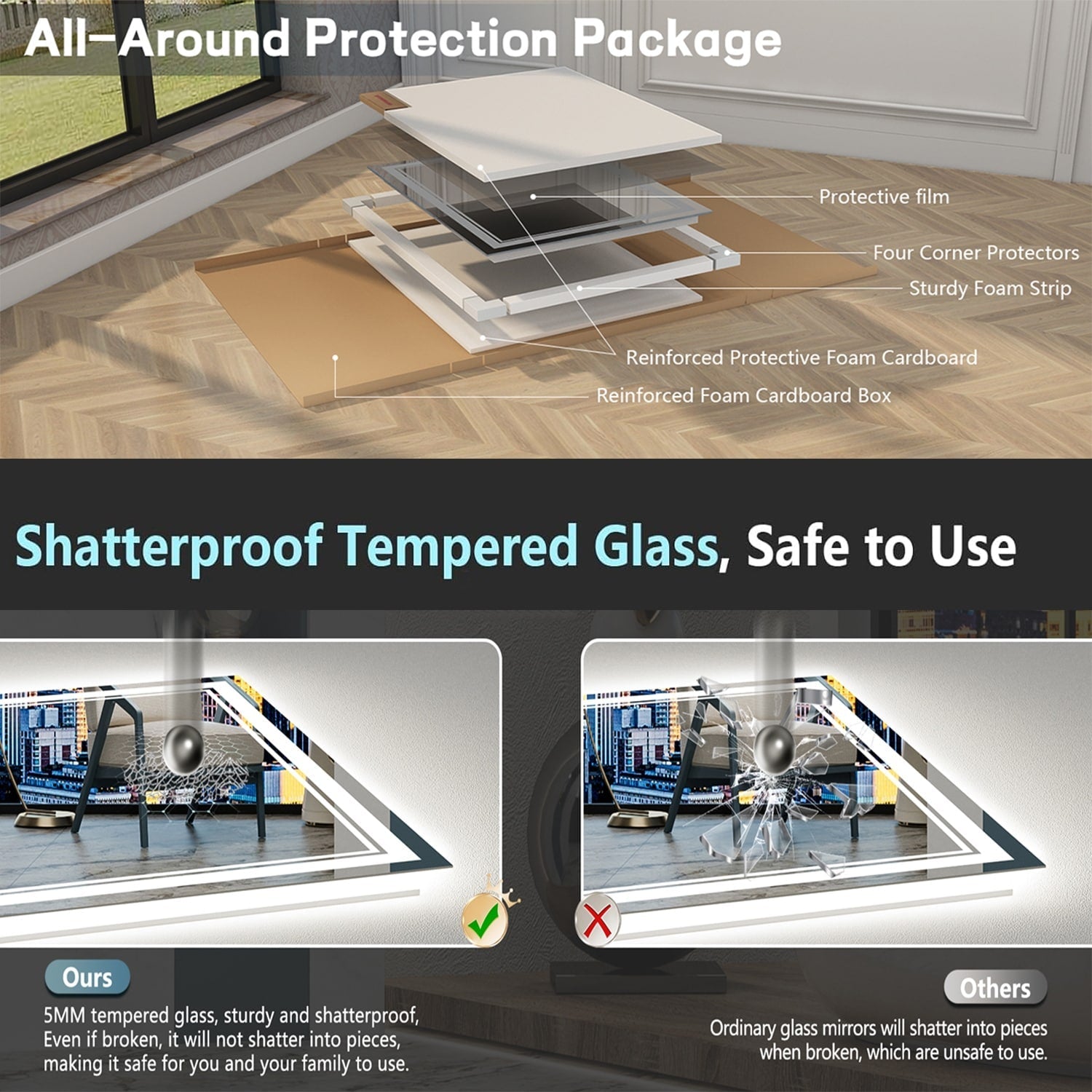 - Garantie de 3 ans et certification ETL : le miroir est entièrement certifié ETL et le pilote LED, l’alimentation et la prise sont certifiés UL. Nous offrons une garantie exceptionnelle de 3 ans. En cas de problème, n’hésitez pas à nous contacter.