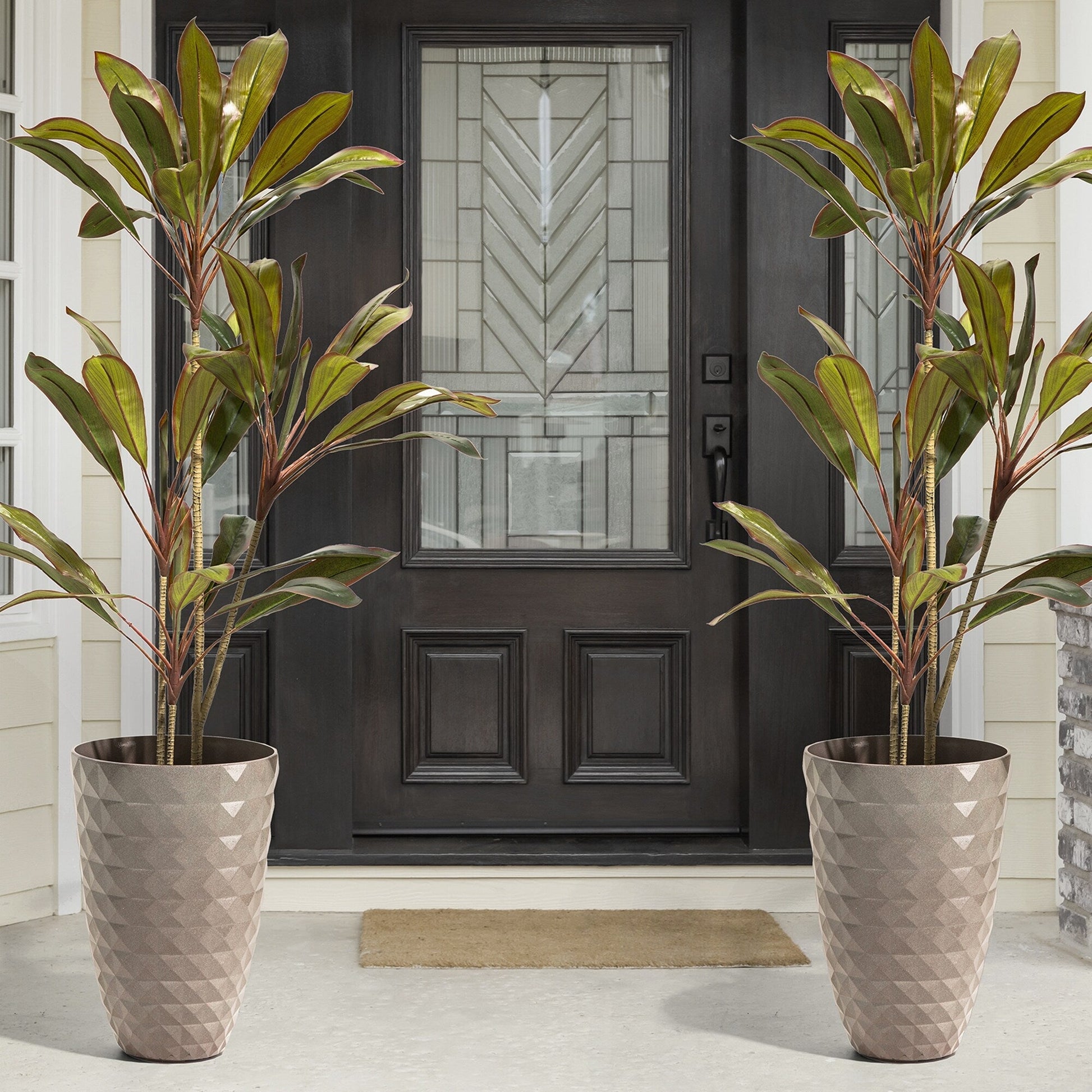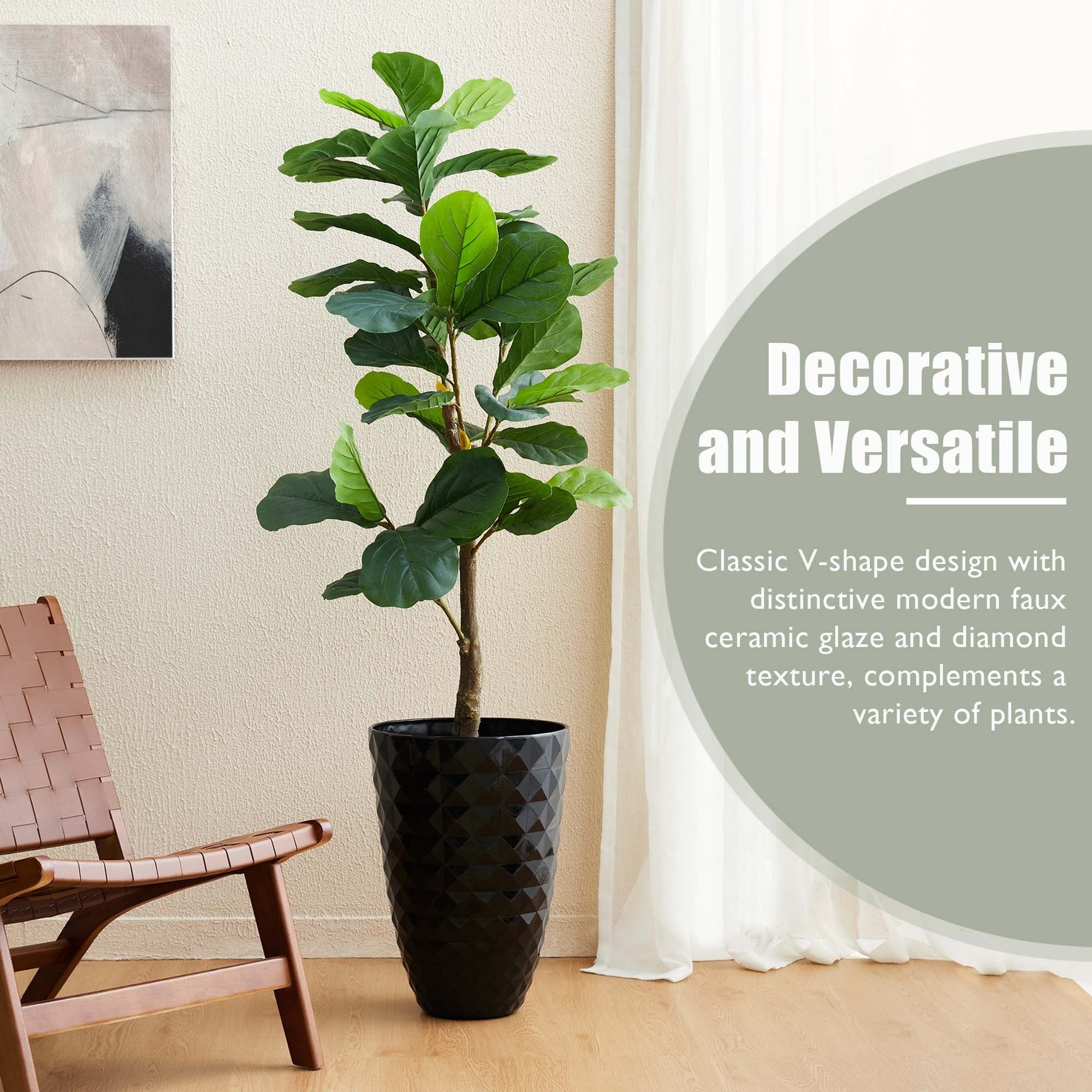 Glitzhome 19,75 H Pot de fleurs haut surdimensionné écologique en fausse céramique à texture diamant (lot de 2)