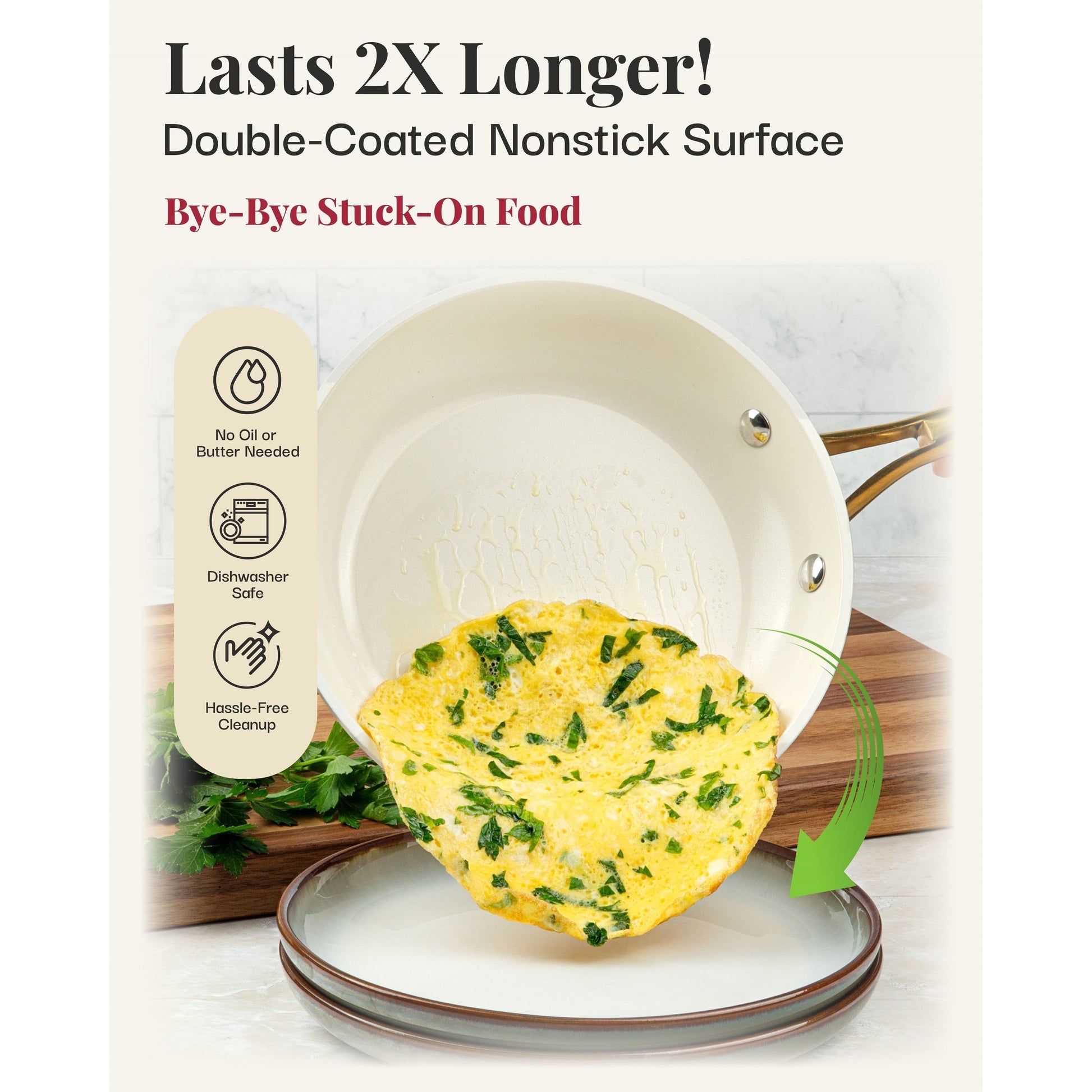 - Revêtement en céramique antiadhésif ultra-durable : dispose d'un revêtement en céramique avancé qui garantit que les aliments glissent facilement sur la surface, favorisant une cuisson plus saine avec un minimum d'huile ou de beurre nécessaire.
