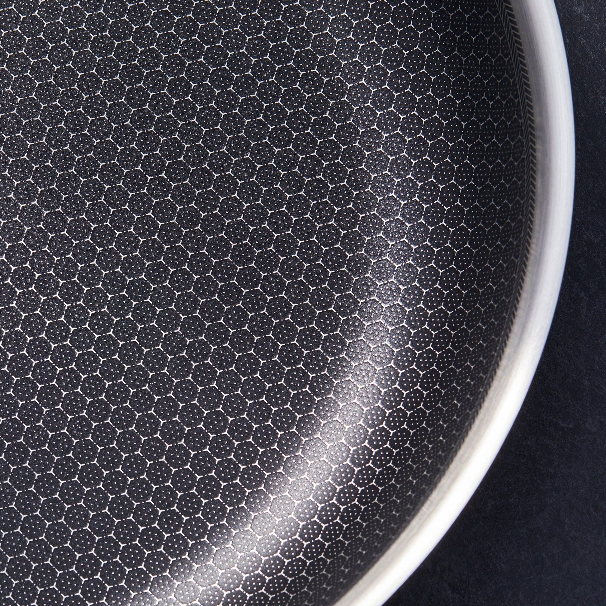 Faites dorer et saisir vos aliments sans crainte, tout en profitant d'un démoulage et d'un nettoyage faciles grâce aux ustensiles de cuisine antiadhésifs hybrides HENCKELS Paradigm. Cet ensemble de poêles comprend 3 poêles indispensables pour la cuisine quotidienne. Brouillez les œufs dans la poêle de 20 cm, saisissez la viande et faites sauter les légumes dans la poêle de 25 cm, et cuisinez pour un grand groupe dans la poêle de 28 cm. Un motif en acier inoxydable en relief et un revêtement antiadhésif triple couche allient la polyvalence et la durabilité de l'acier inoxydable à la praticité de l'antiadhésif. Le revêtement innovant et la construction robuste en acier inoxydable triple épaisseur garantissent des performances exceptionnelles, que vous souhaitiez dorer vos protéines préférées ou préparer des omelettes légères et moelleuses. Parmi les caractéristiques pratiques pour les chefs, citons une poignée ergonomique en V qui reste froide avec une boucle de suspension pour un rangement pratique, et un bord évasé pour un versement sans dégâts. Compatibles avec toutes les plaques de cuisson, elles permettent de saisir les aliments sur la cuisinière puis de les transférer facilement au four. Compatible lave-vaisselle, HENCKELS Paradigm est facile à nettoyer, ce qui fait de cette batterie de cuisine simple à utiliser un plaisir à cuisiner.