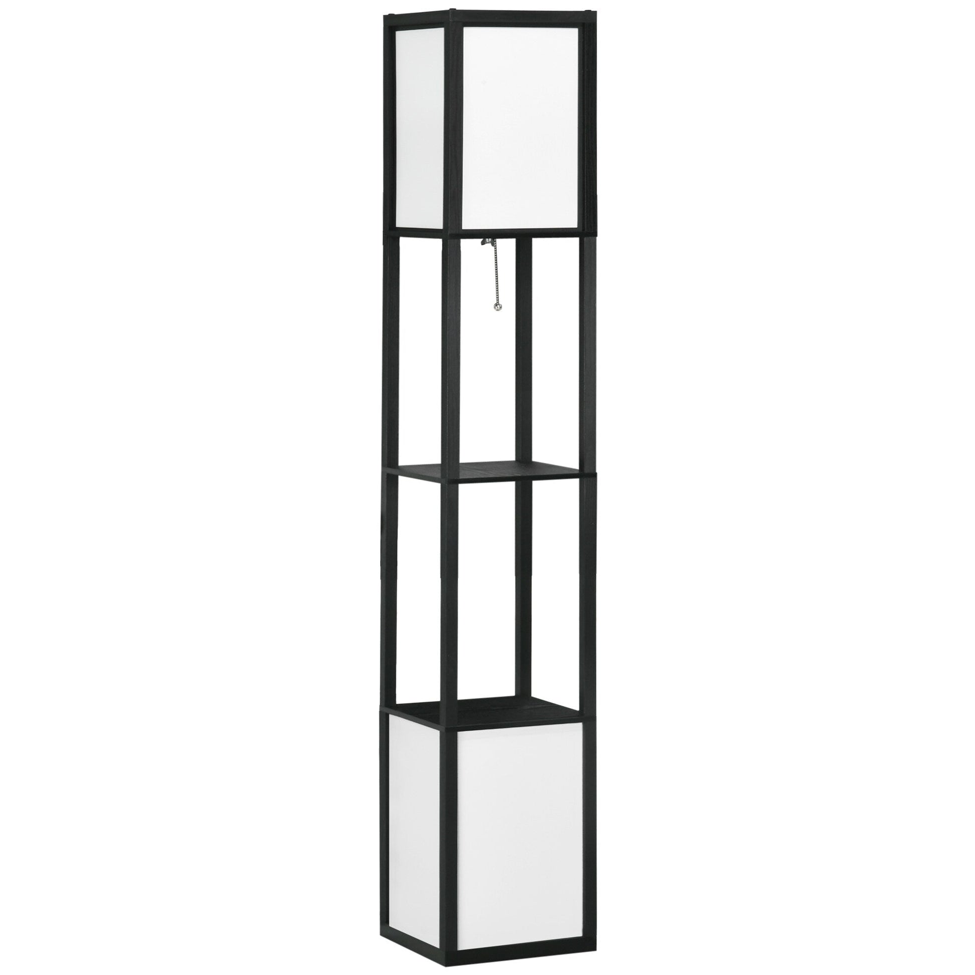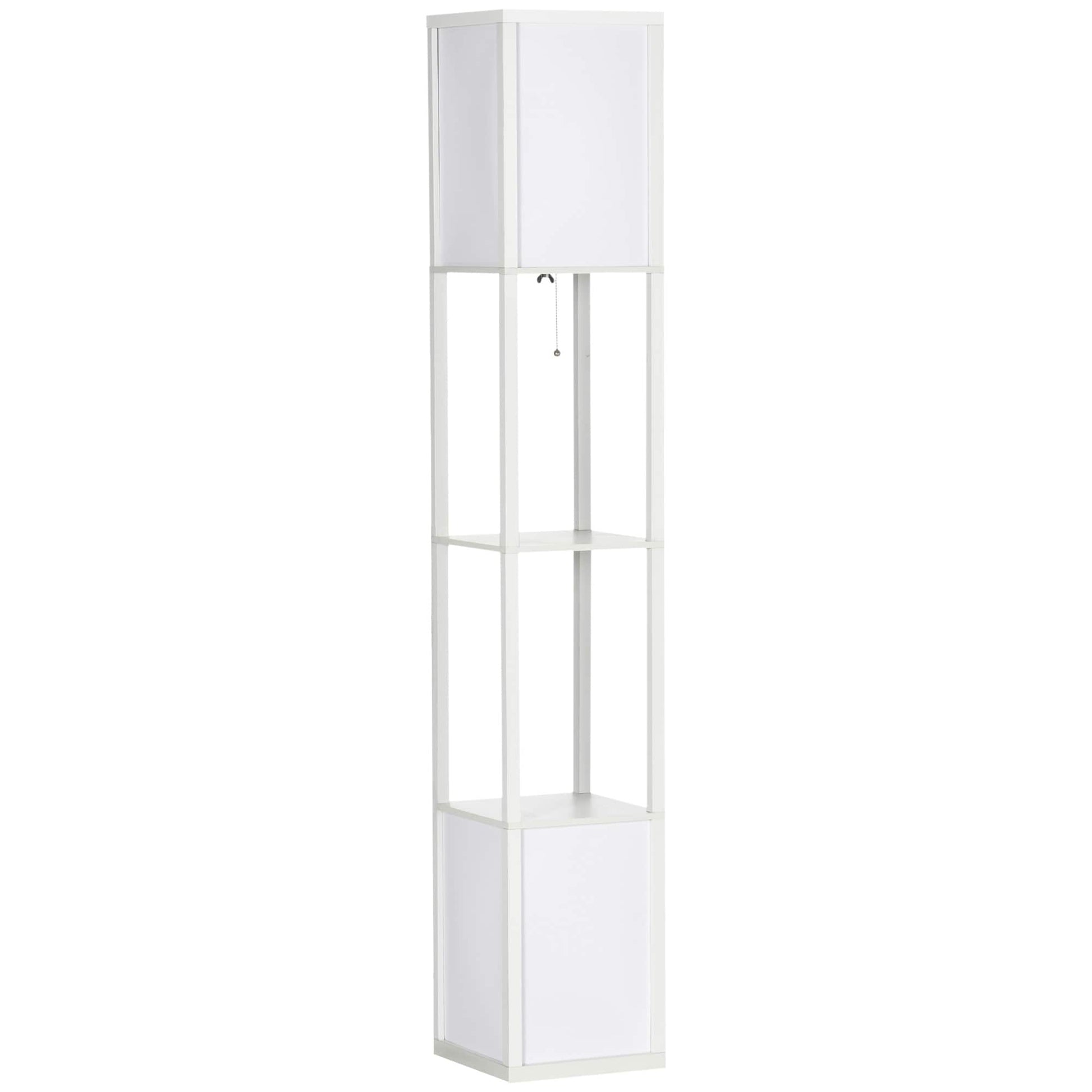 Lampadaire HOMCOM avec étagères, double éclairage, lampes sur pied hautes modernes, avec abat-jour en tissu (ampoule non incluse)