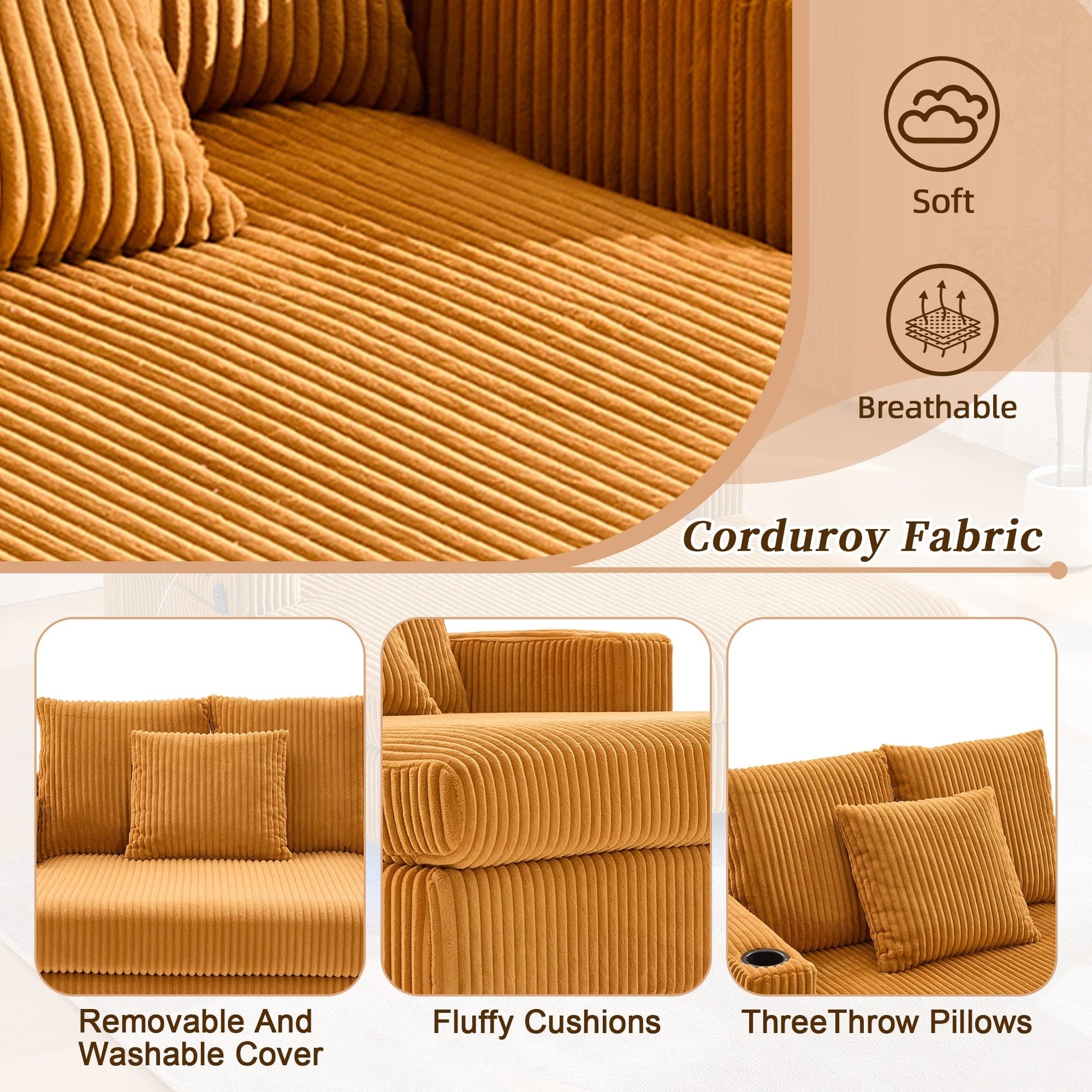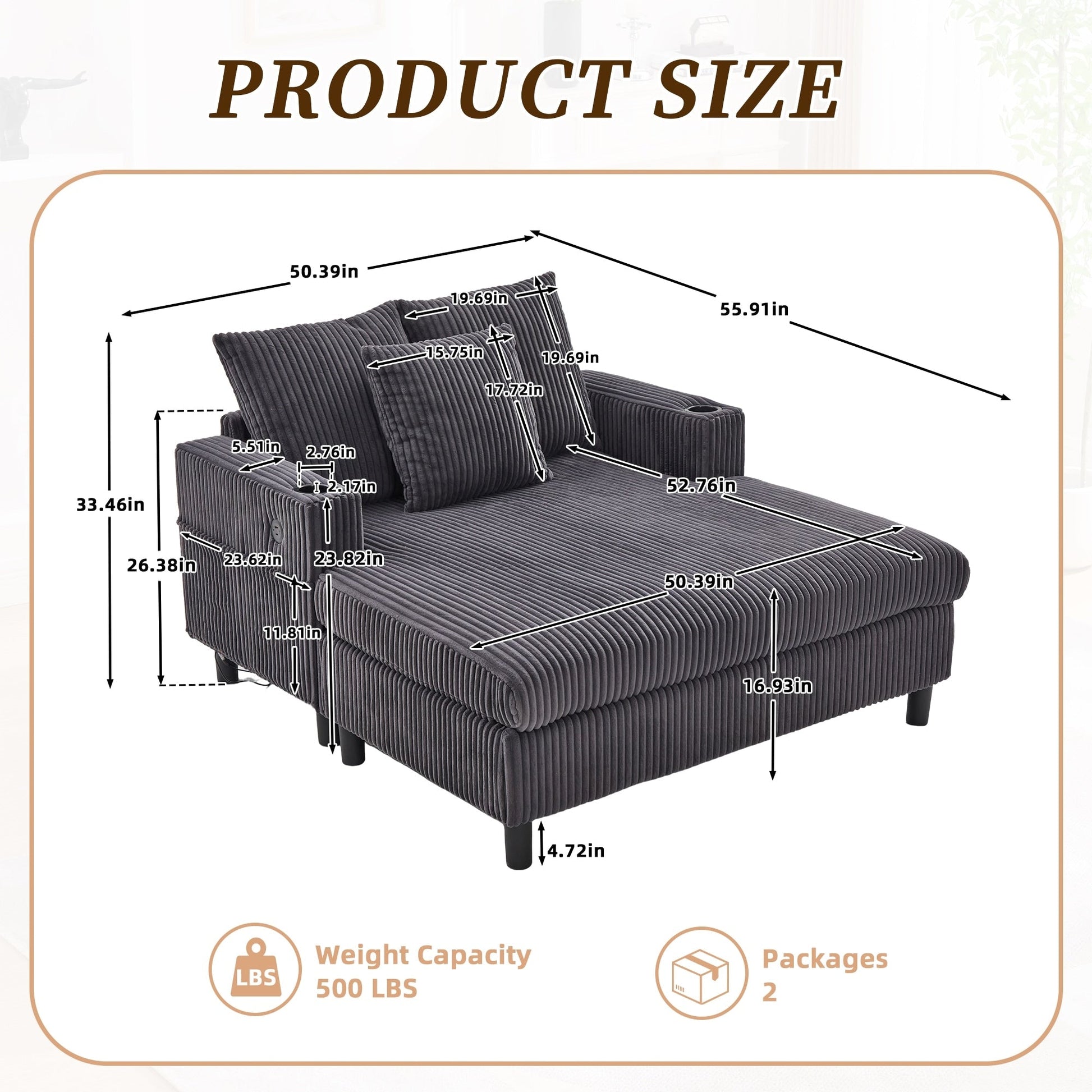 Canapé-lit inclinable surdimensionné HOMEFUN en velours côtelé avec éclairage LED RVB, porte-gobelet, port USB et 3 oreillers
