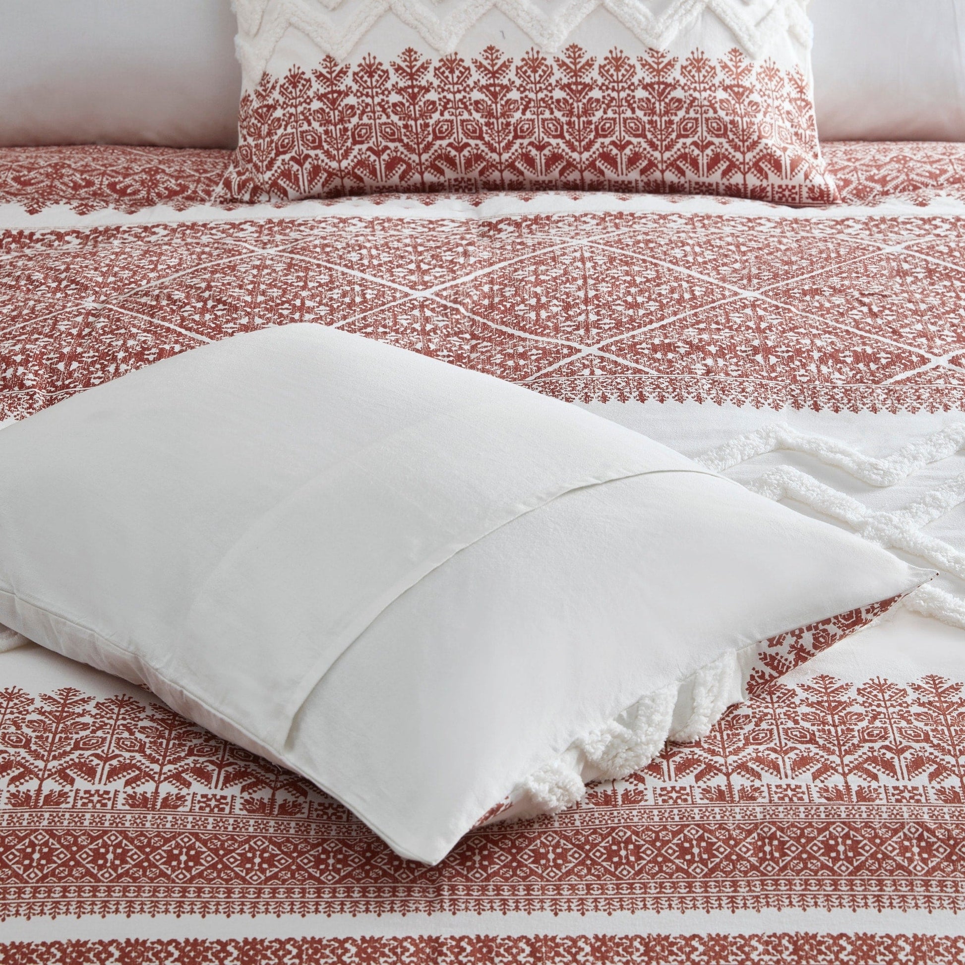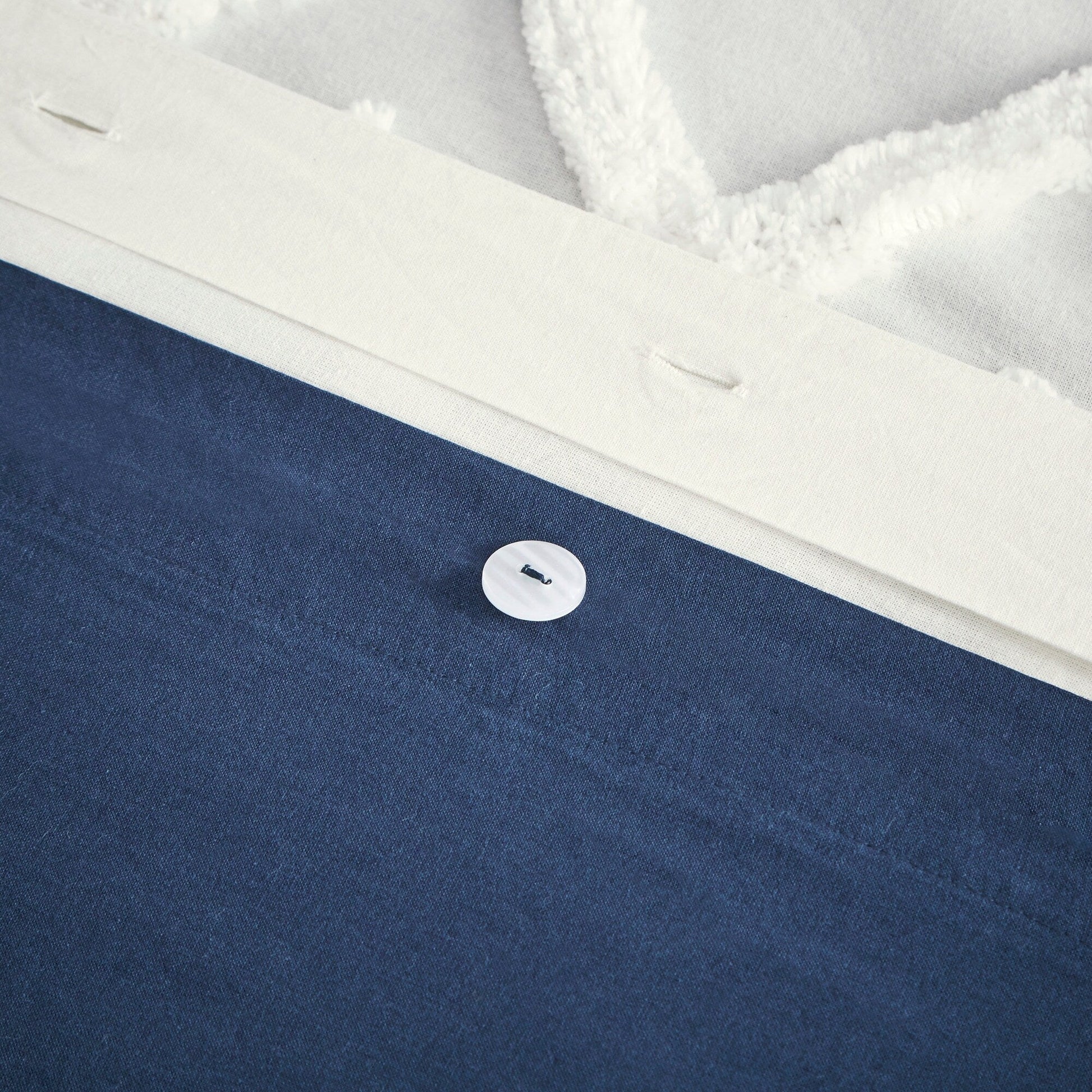 - Housse de couette et taie d'oreiller : 100 % coton, imprimée et tuftée en chenille, envers en coton uni. Fermeture à boutons en bas de la housse de couette. Quatre liens intérieurs aux coins. Taie d'oreiller avec fermeture à rabat au dos.