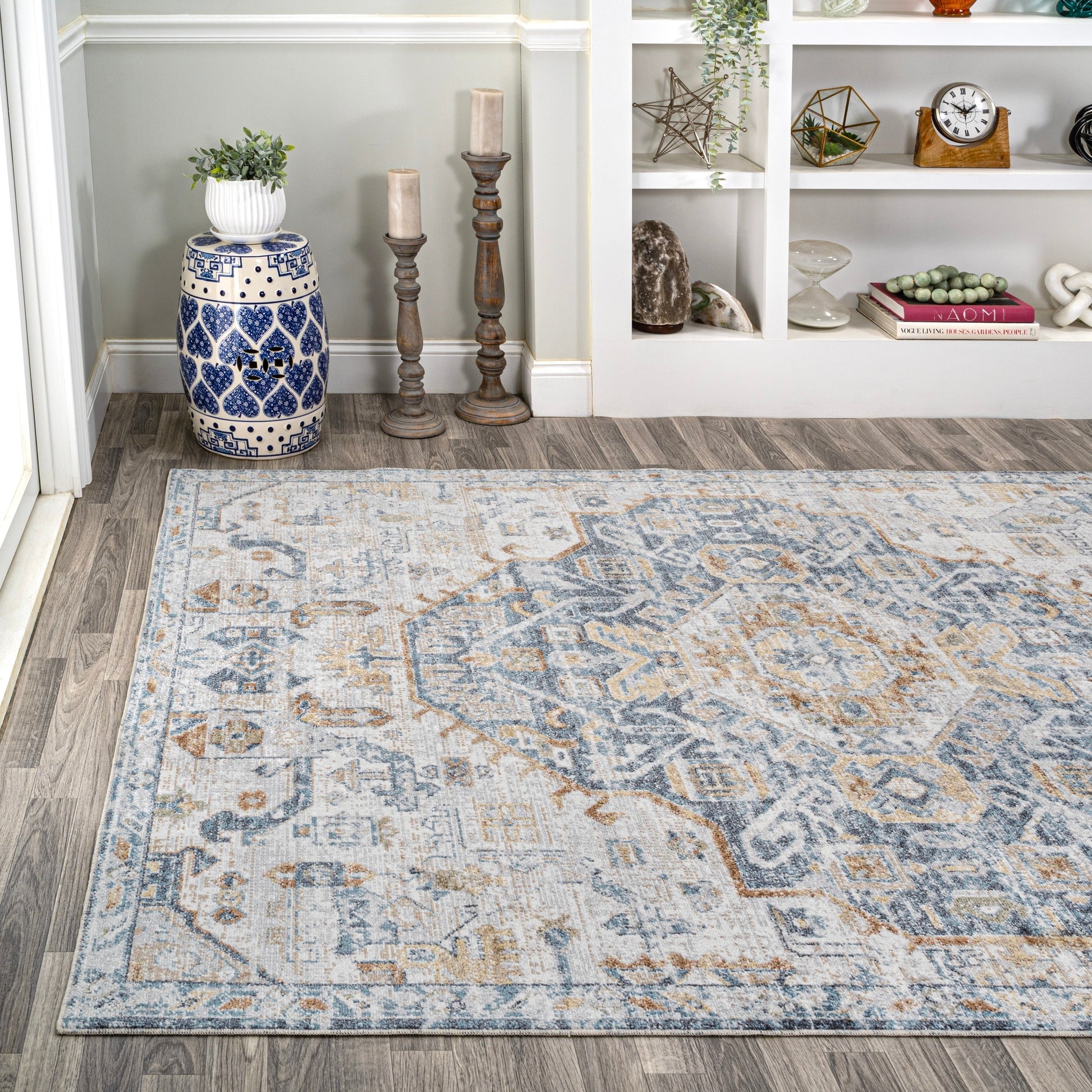 Tapis JONATHAN Y Brandy Bohemian Medallion à poils courts, lavable en machine, couleur crème/terre.