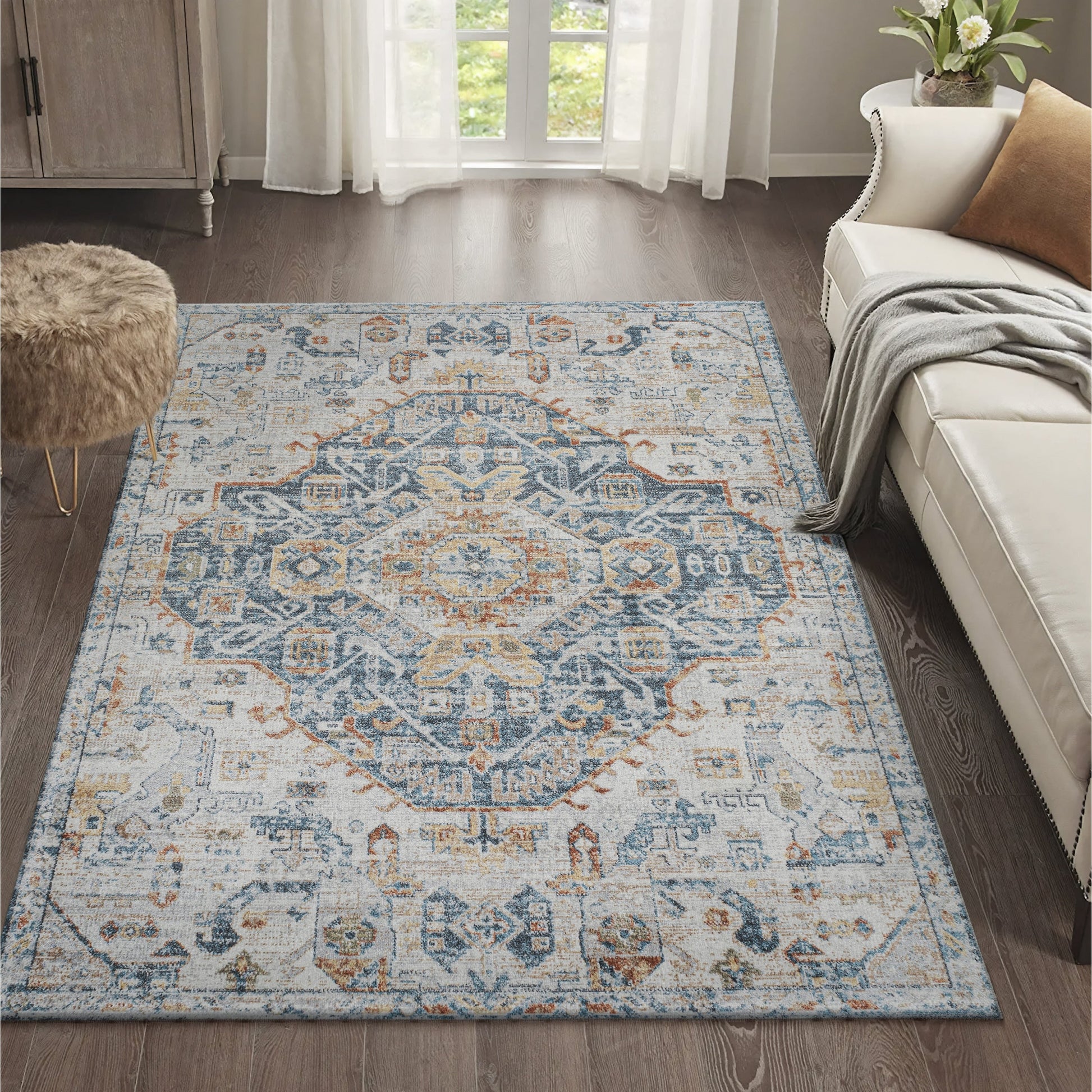 Inspiré du style bohème, ce tapis coloré arbore un motif médaillon classique. Grâce à ses fibres synthétiques spéciales, il est lavable en machine et facile d'entretien. Que ce soit dans un bureau, un salon ou une chambre, ce tapis apportera une touche d'originalité à n'importe quelle pièce.