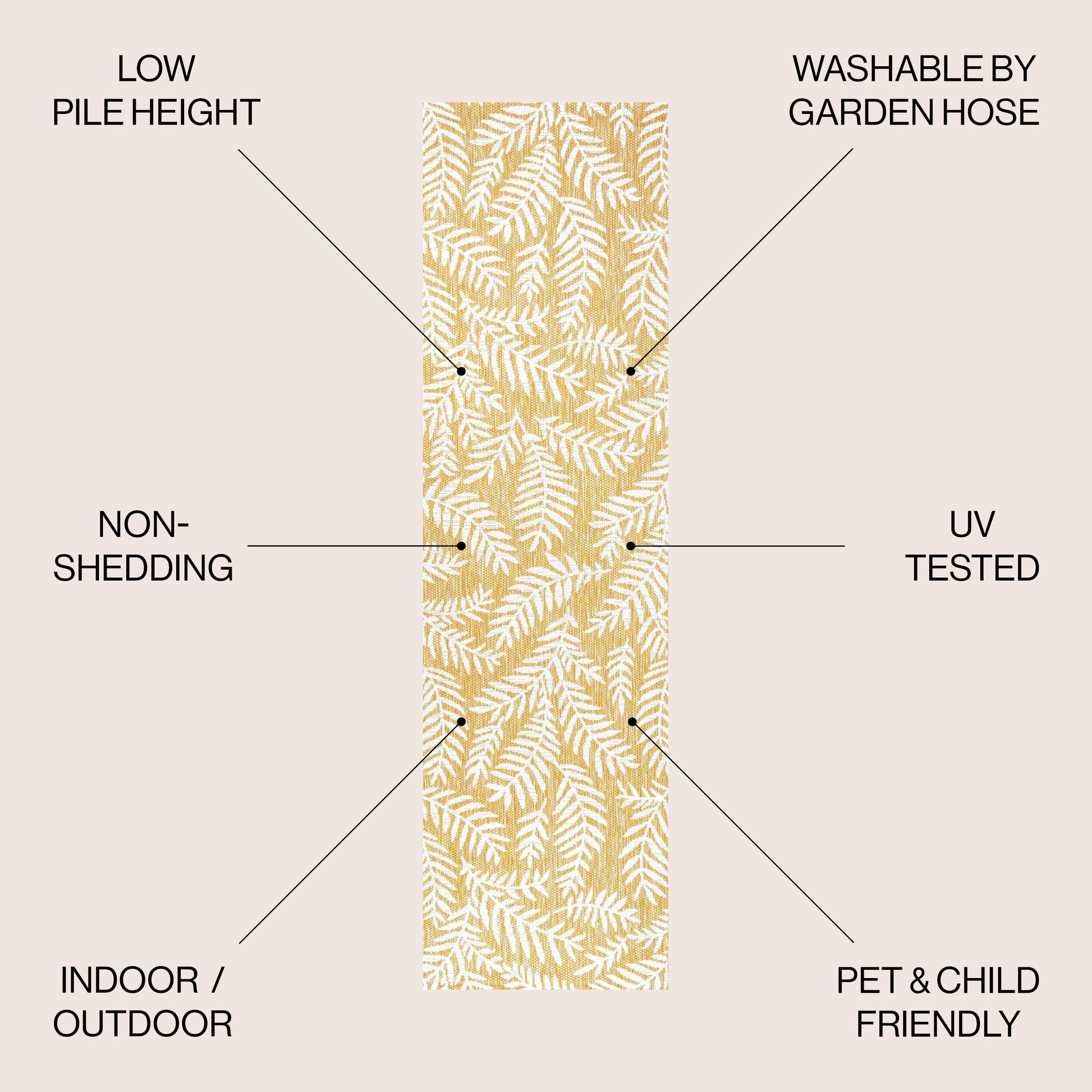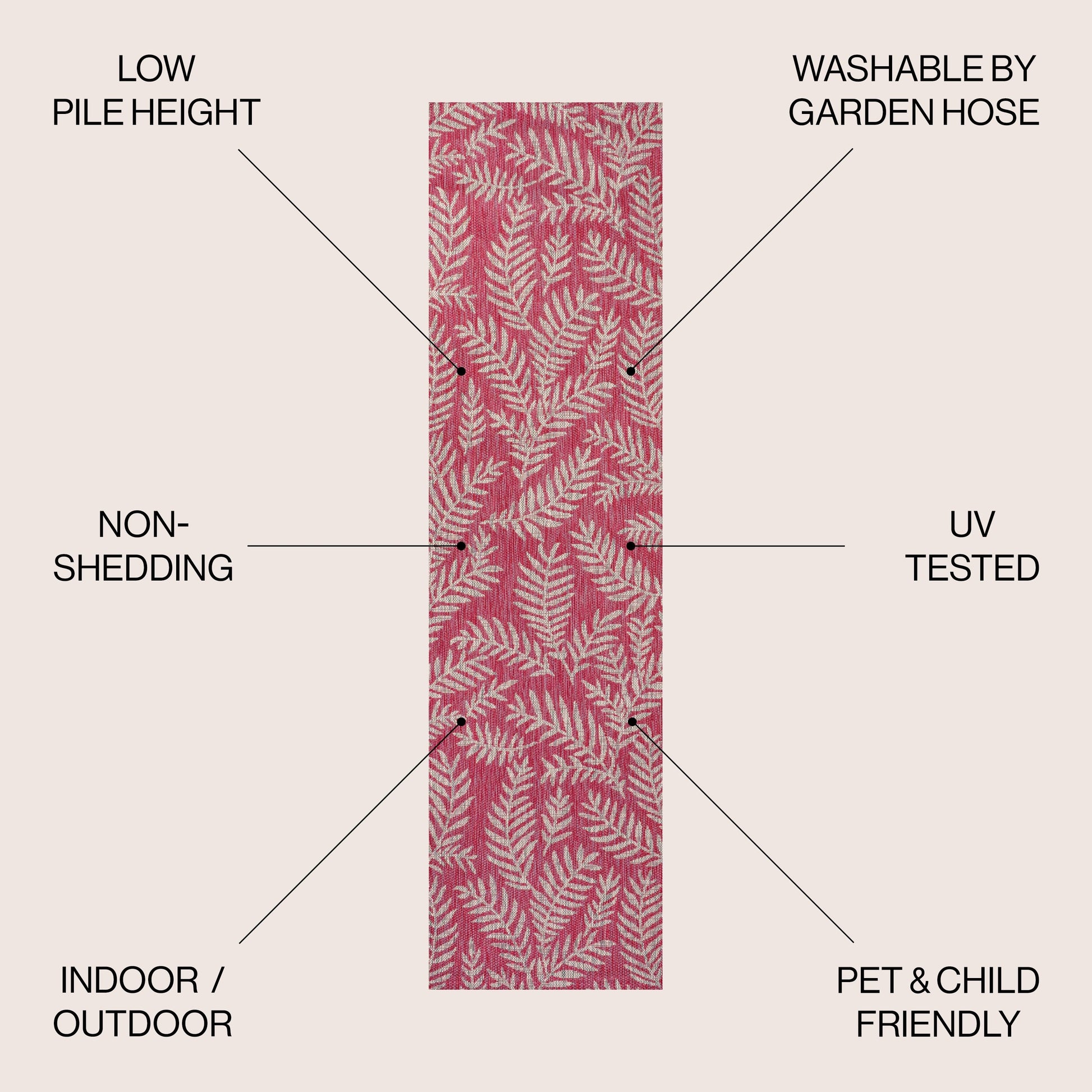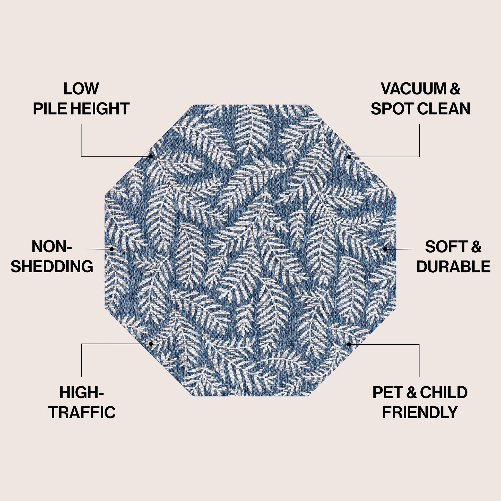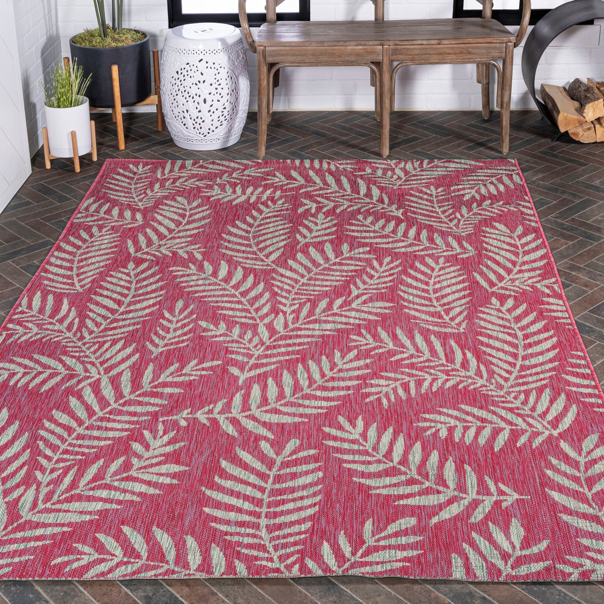 Apportez une touche tropicale à votre intérieur ou extérieur avec le tapis Galon Palm Frond de JONATHAN Y. Son motif de palmes aux couleurs contrastées crée un design à la fois dynamique et élégant. Idéal pour votre terrasse, entrée, cuisine, couloir, salon ou chambre, ce tapis tissé à plat est composé à 100 % de polypropylène résistant et facile d'entretien. Résistant aux enfants et aux animaux, il se nettoie d'un simple coup de balai ou au jet d'eau avec de l'eau savonneuse. Disponible en plusieurs tailles et coloris, ce tapis est tissé mécaniquement en Turquie et a une épaisseur de 4,8 mm.