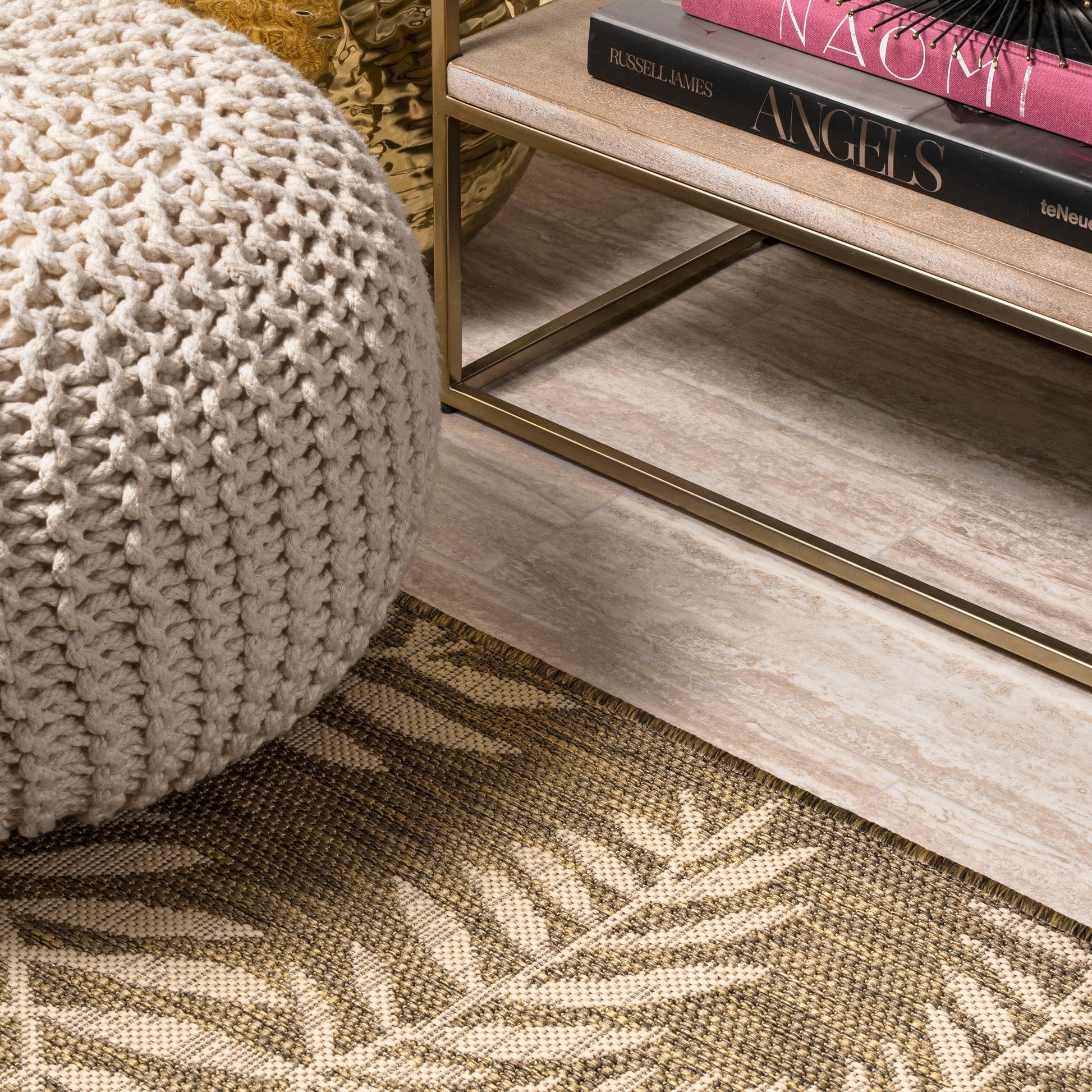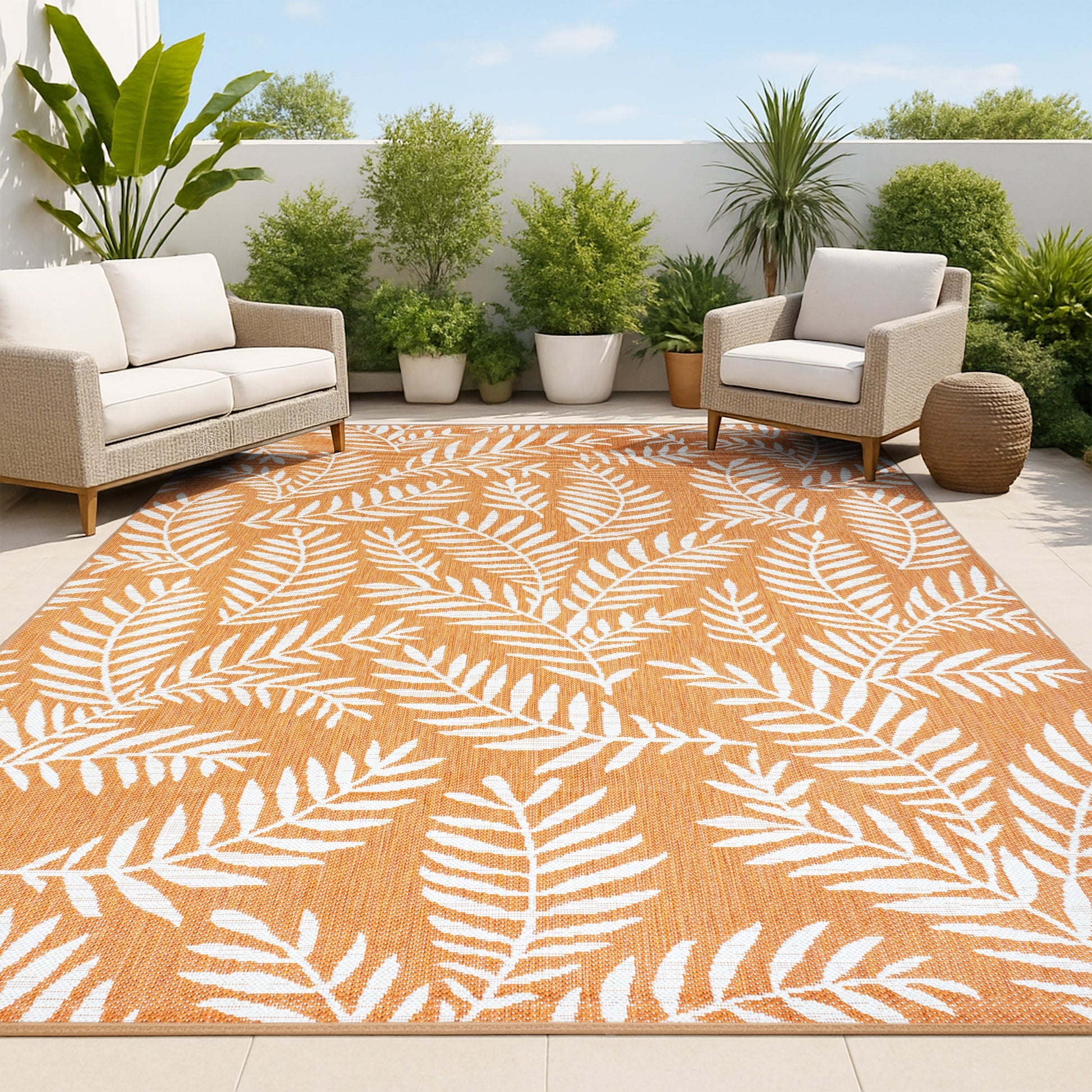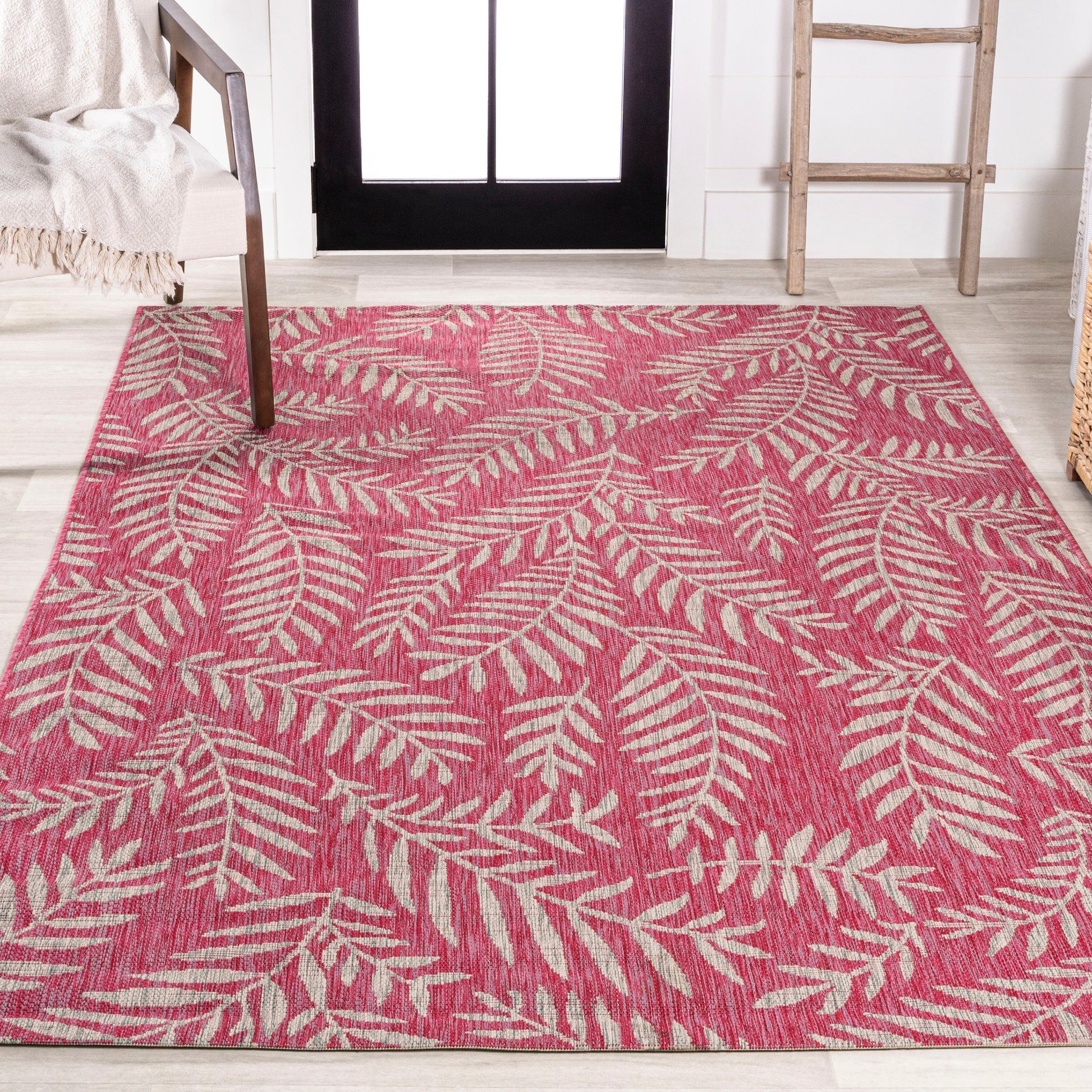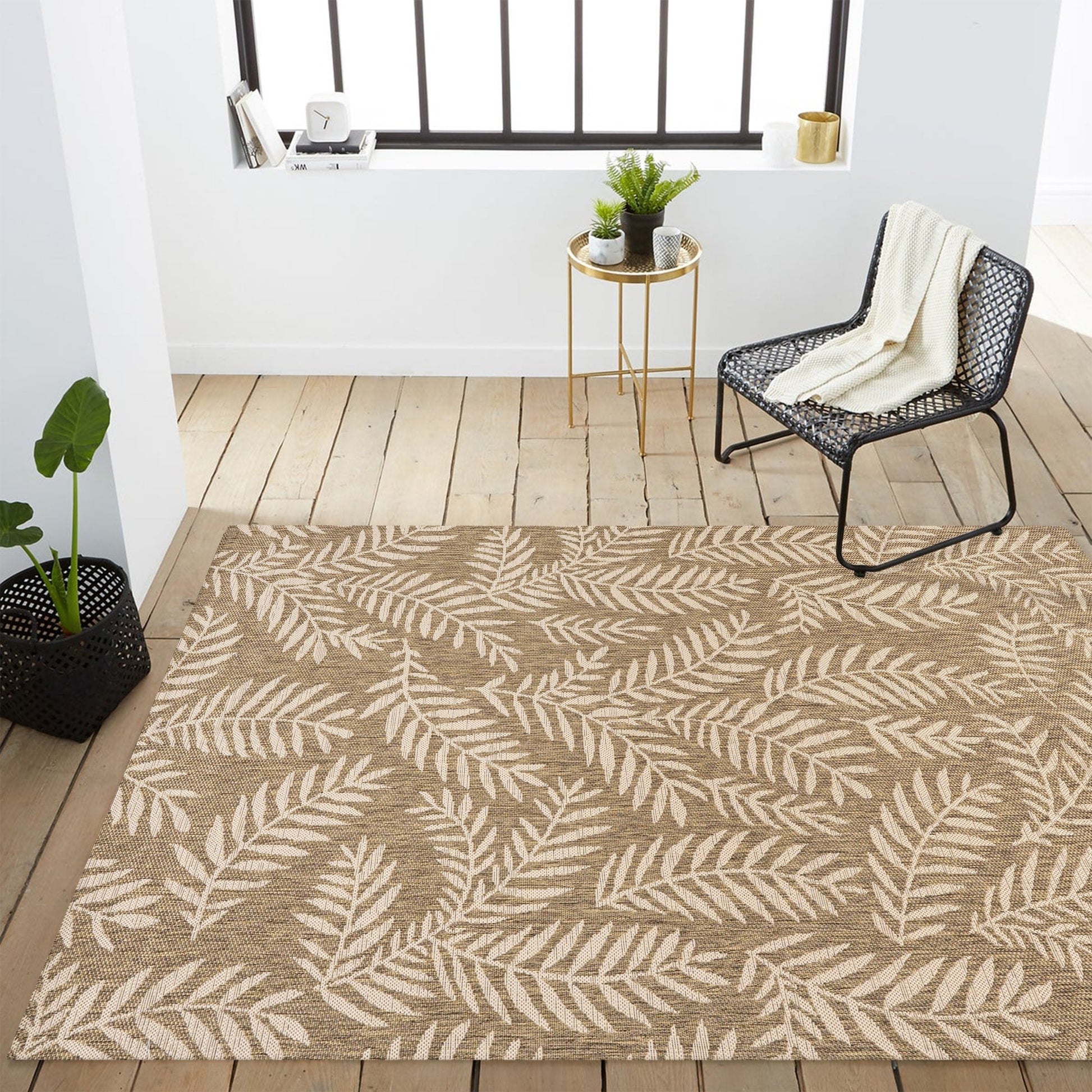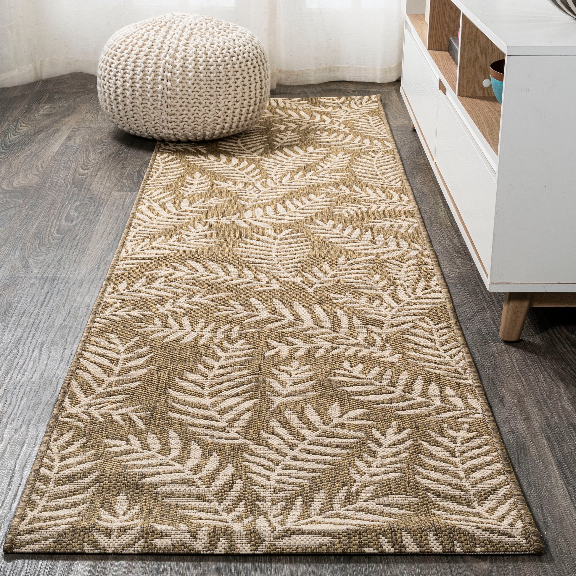 JONATHAN Y Tapis intérieur/extérieur à fronde de palmier Galon