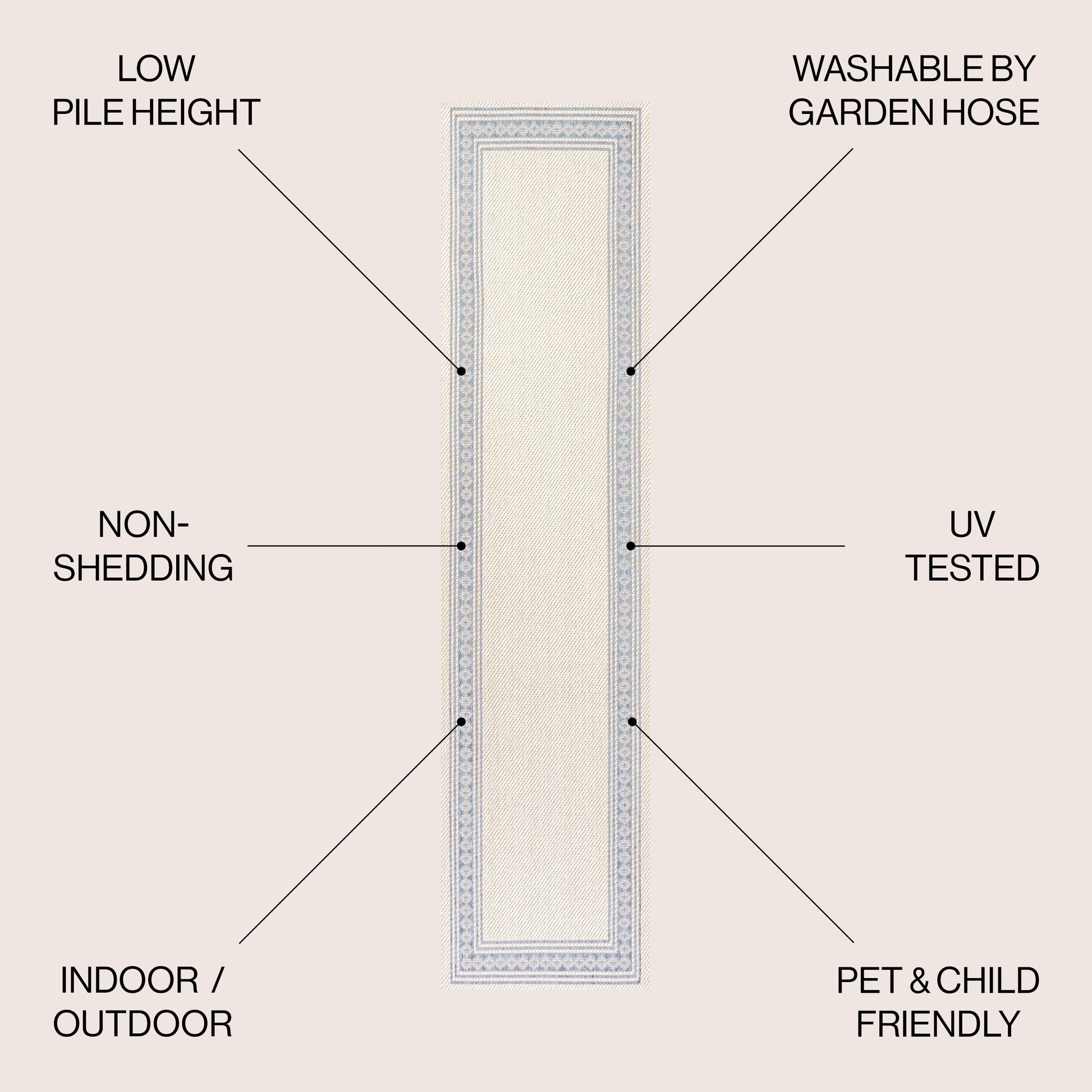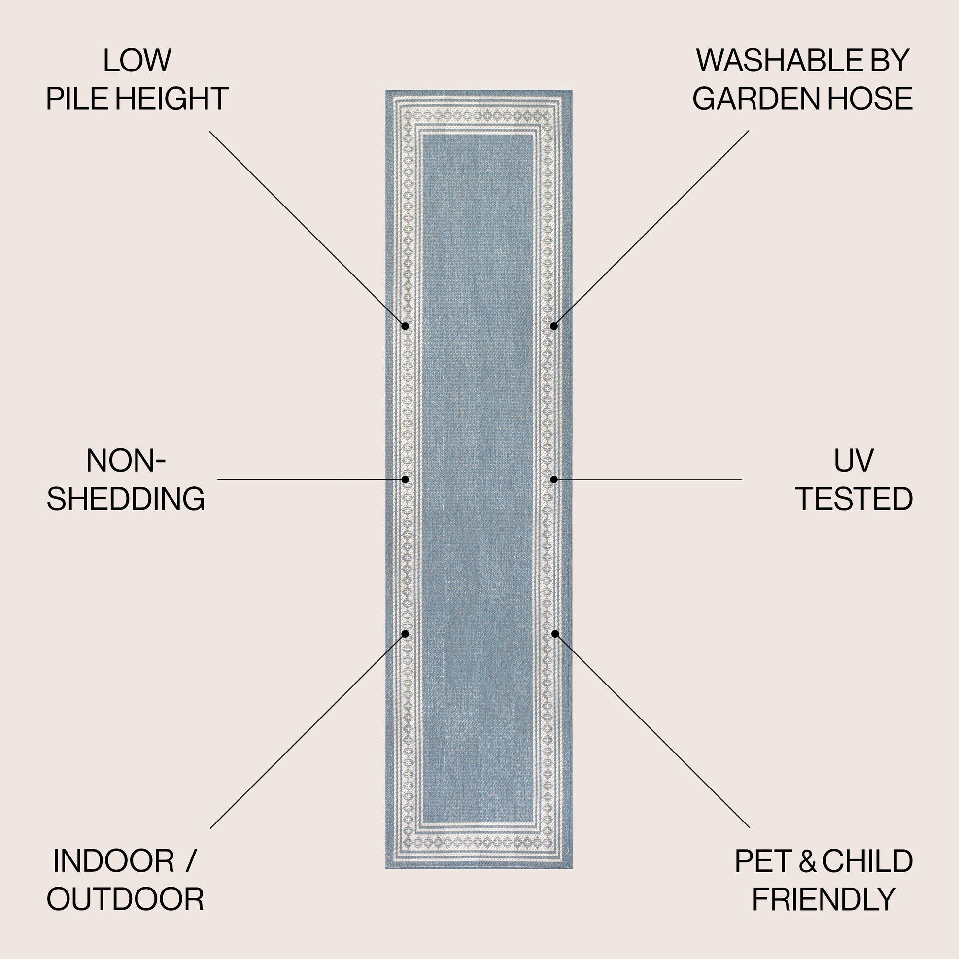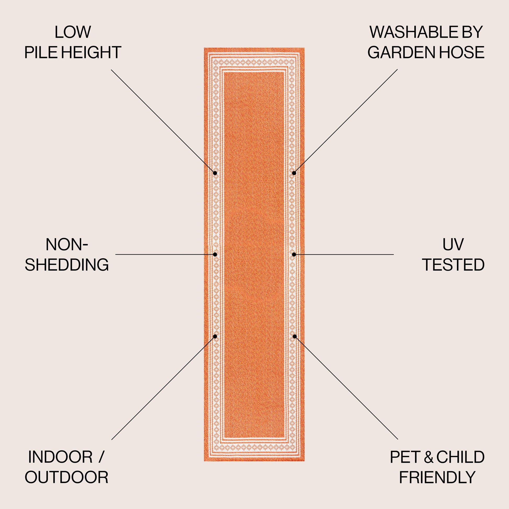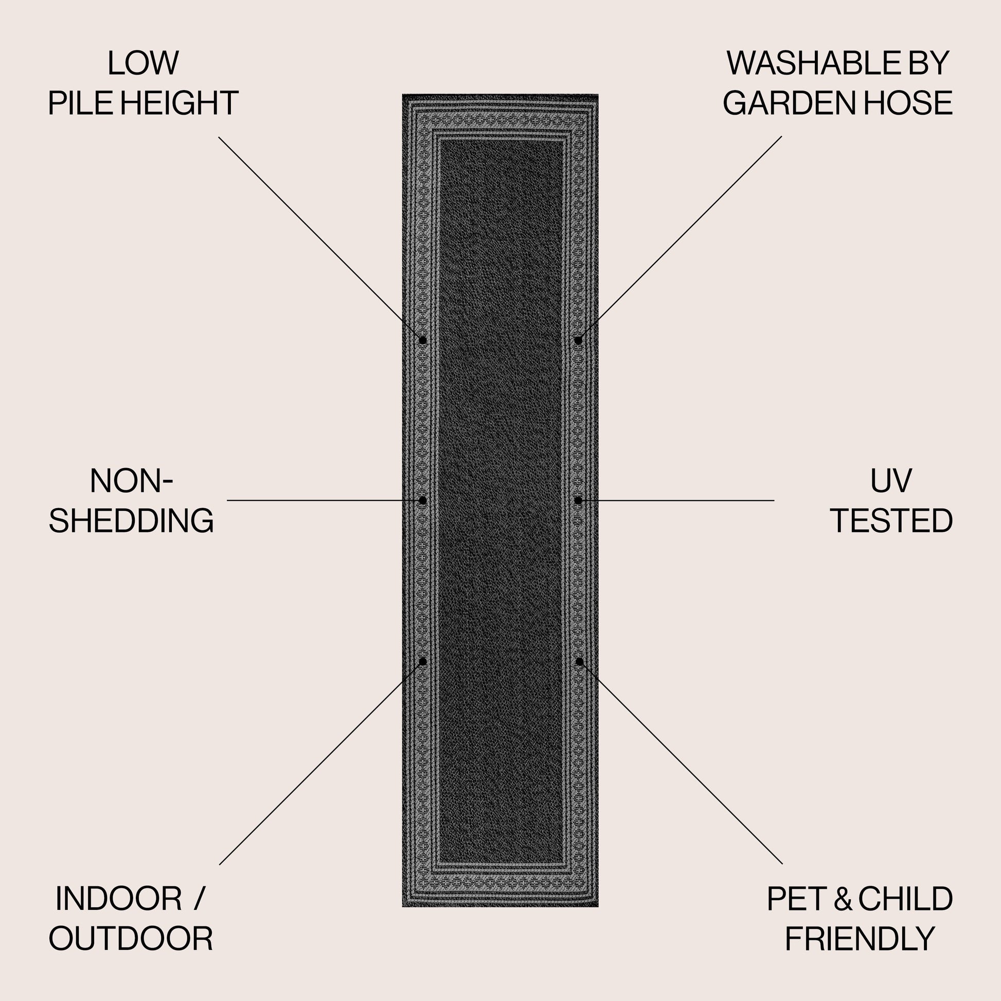 - Fabriqué en polypropylène facile d'entretien : il suffit de balayer, de passer l'aspirateur ou de le nettoyer au jet d'eau savonneuse.