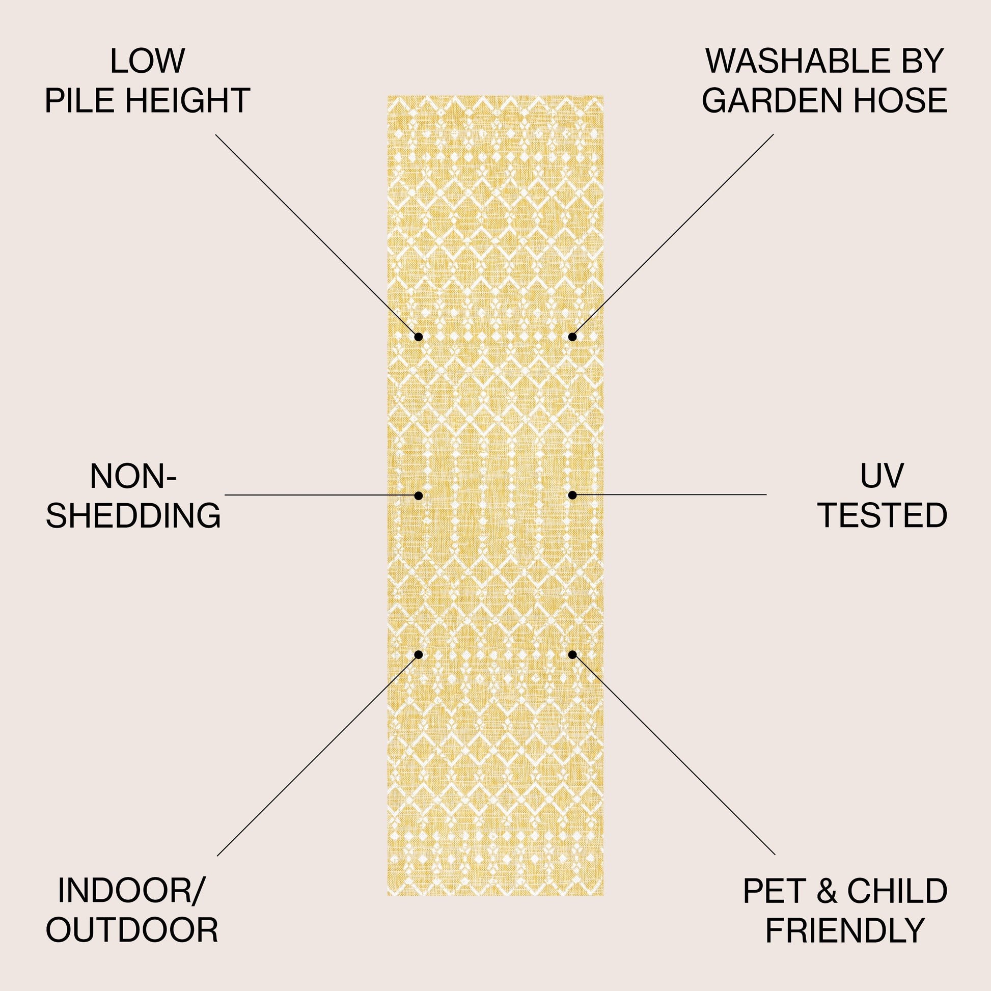 Apportez une touche marocaine à votre espace extérieur avec le tapis JONATHAN Y Trebol à motif géométrique texturé. Orné d'un superbe motif géométrique décliné dans une variété de nuances, ce tapis est idéal pour ajouter une note vintage à votre porche ou terrasse. Sa construction à tissage plat et sa matière en polypropylène résistant le rendent parfait pour les zones de passage fréquent. Tissé mécaniquement en Turquie, ce tapis est disponible en plusieurs tailles et coloris pour répondre à tous vos besoins.