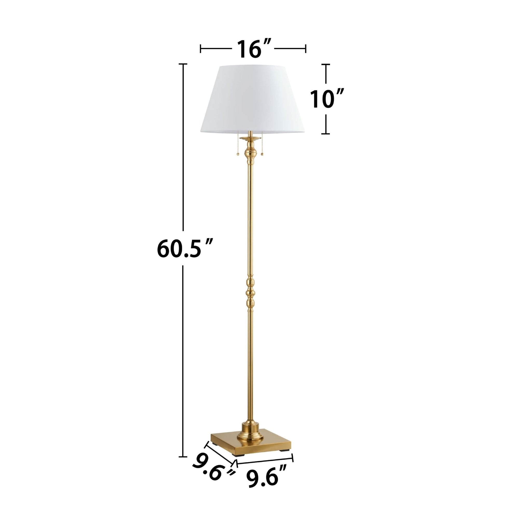 Un charmant mélange de design traditionnel et de style moderne. Ce lampadaire en métal présente un abat-jour classique et un pied carré à la finition traditionnelle, disponible en deux coloris : or antique et noir. Il est équipé de deux ampoules commandées par un interrupteur à chaînette classique. (Ampoules non incluses)