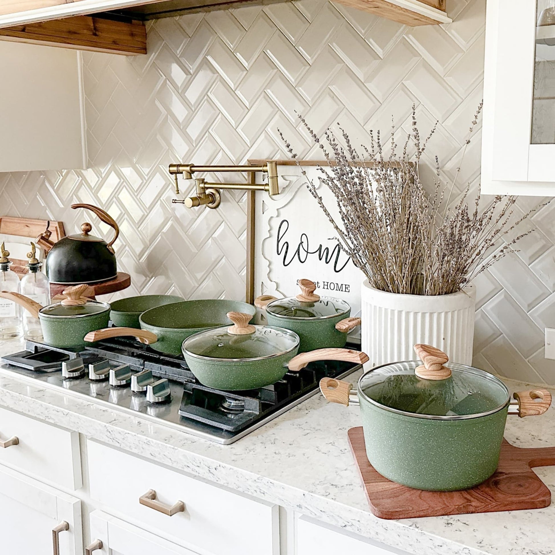 Batterie de cuisine antiadhésive, ensemble de 12 casseroles et poêles en granit