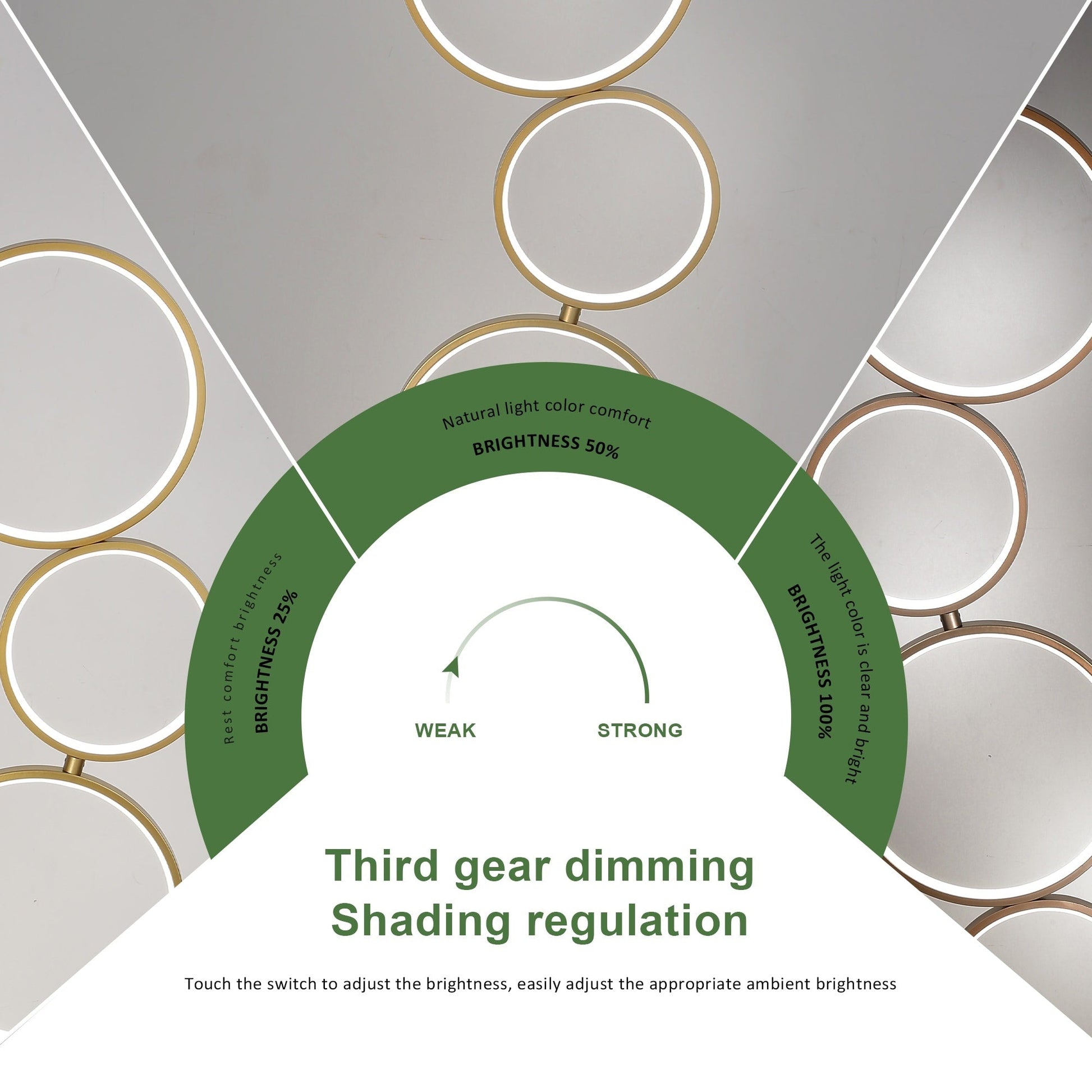 Lampadaire LED moderne à intensité variable, lampe d'angle lumineuse à 3 voies avec 5 anneaux pour salon