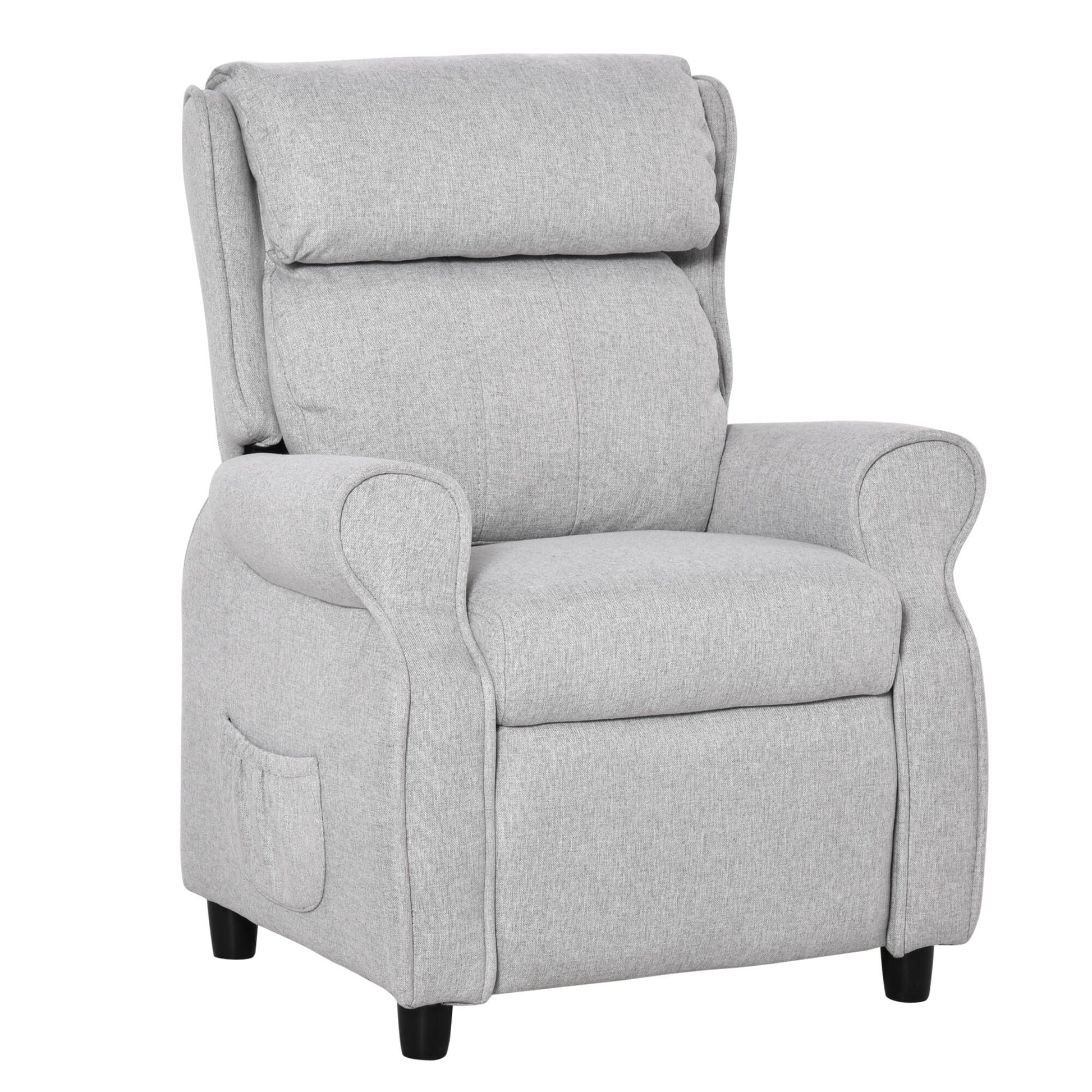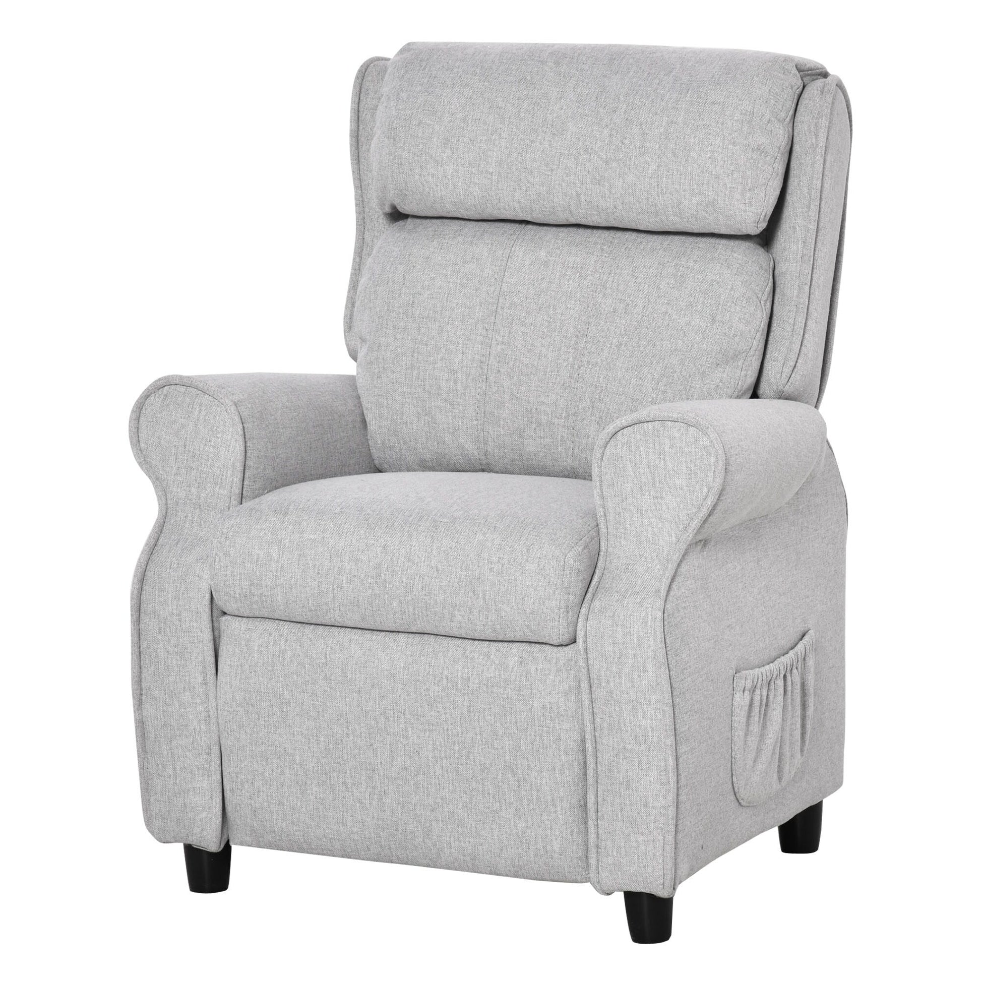 Fauteuil inclinable manuel rembourré gris clair pour enfants de 3 à 5 ans avec repose-pieds et 2 poches latérales