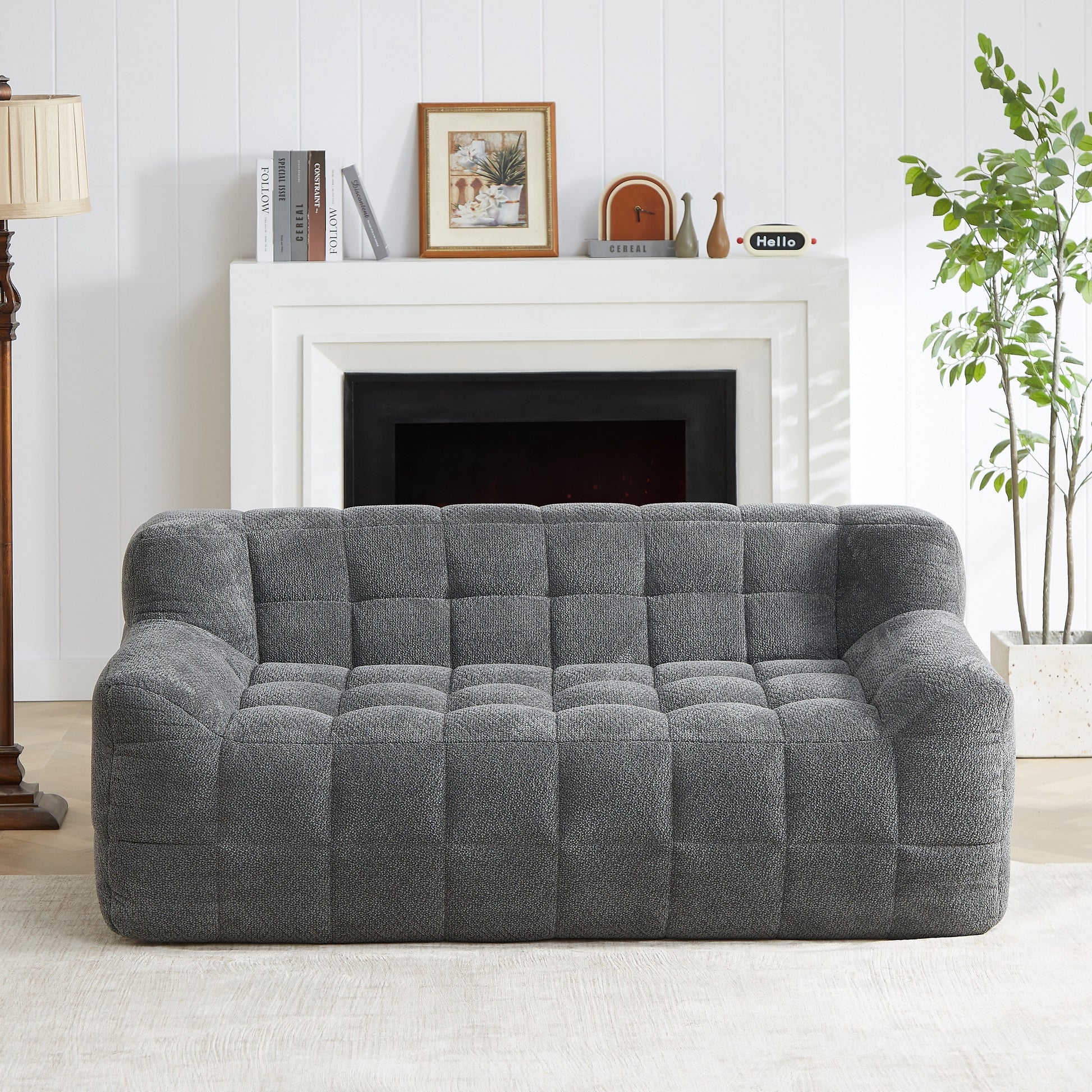 Canapé 2 places Liyasi à compression complète en velours litchi beige, aucun assemblage requis