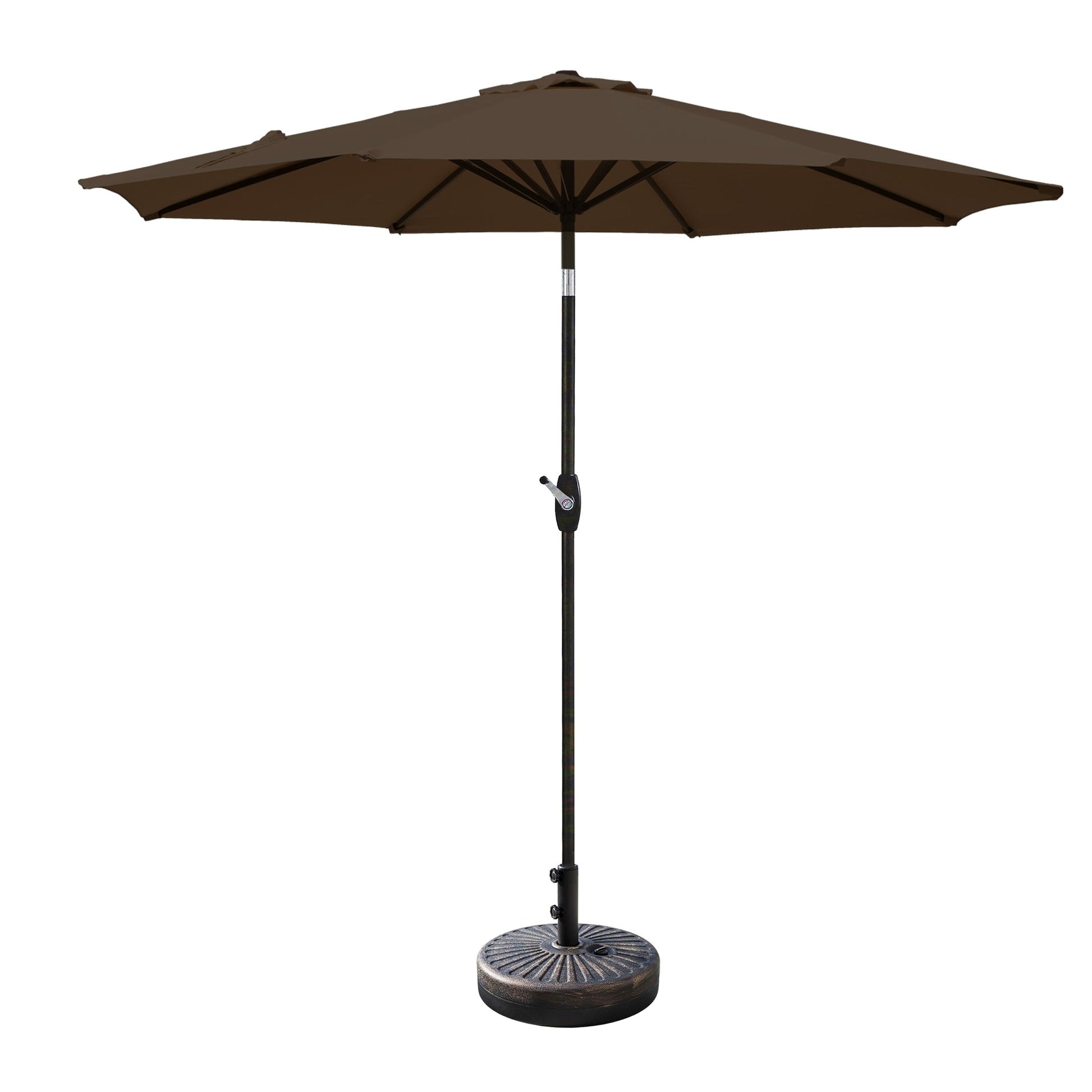 Parasol de patio Lopes de 9 pieds avec base en finition bronze et support de poids inclus