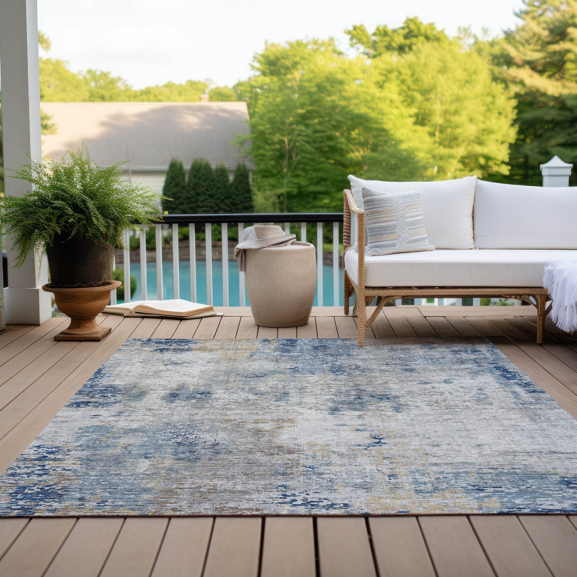 Sublimez vos sols avec notre tapis aux motifs abstraits et fantaisistes, alliant styles transitionnel et moderne. Son design unique apporte une touche de créativité et de gaieté à votre décoration. Stabilisé aux UV pour une durabilité optimale en toutes circonstances, ultra-fin pour une manipulation aisée, lavable en machine pour un entretien facile et idéal pour les familles avec animaux de compagnie. Son profil ultra-fin permet un séchage rapide après la pluie ou un nettoyage extérieur. Stabilisé aux UV pour une utilisation intérieure ou extérieure. Tous les tapis exposés longtemps à un ensoleillement intense et direct peuvent se décolorer avec le temps. Nos tapis sont particulièrement adaptés aux espaces extérieurs couverts et aux zones non couvertes bénéficiant d'un ensoleillement direct modéré. Les grands formats peuvent ne pas convenir aux machines à laver domestiques. Ils peuvent être lavés en machine à laver industrielle ou rincés à l'eau savonneuse. Séchage à l'air libre uniquement. Bien que chaque tapis soit déjà doté d'un envers antidérapant, un sous-tapis peut être nécessaire pour plus de confort ou dans les pièces présentant des zones de passage fréquent.